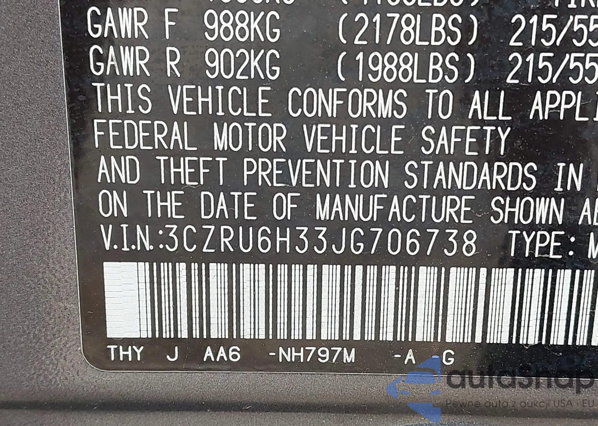 VIN: 3CZRU6H33JG706738