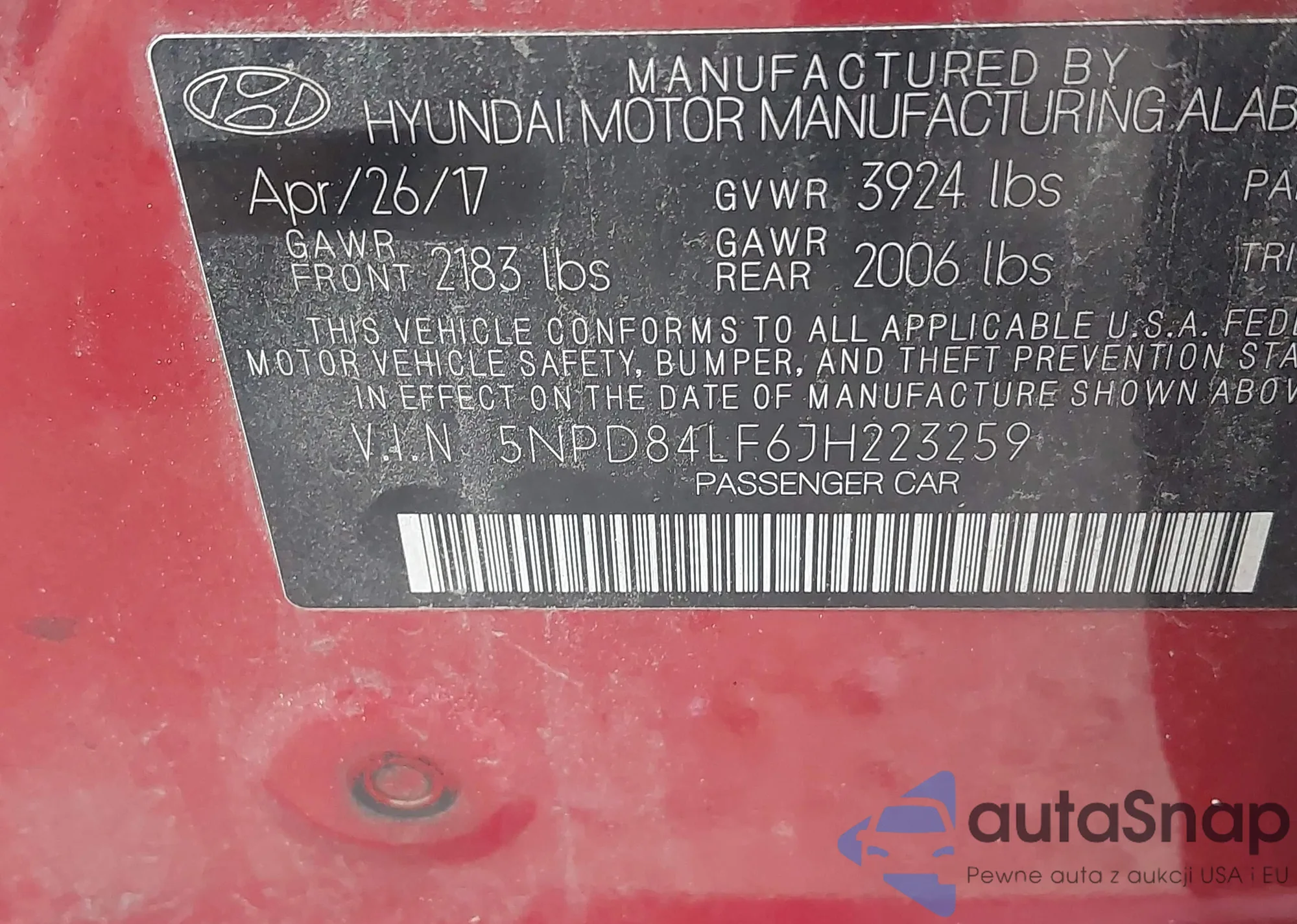 The car Hyundai Elantra 2018 (VIN 5NPD84LF6JH223259) is sold by an unverified seller. We recommend checking the Carfax report and confirming registration possibilities before purchase.