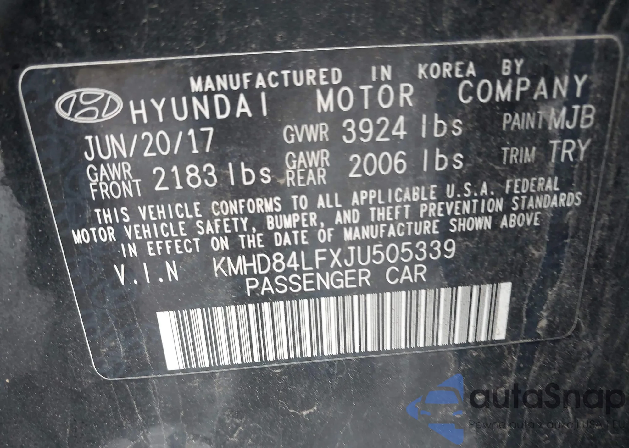 VIN: KMHD84LFXJU505339