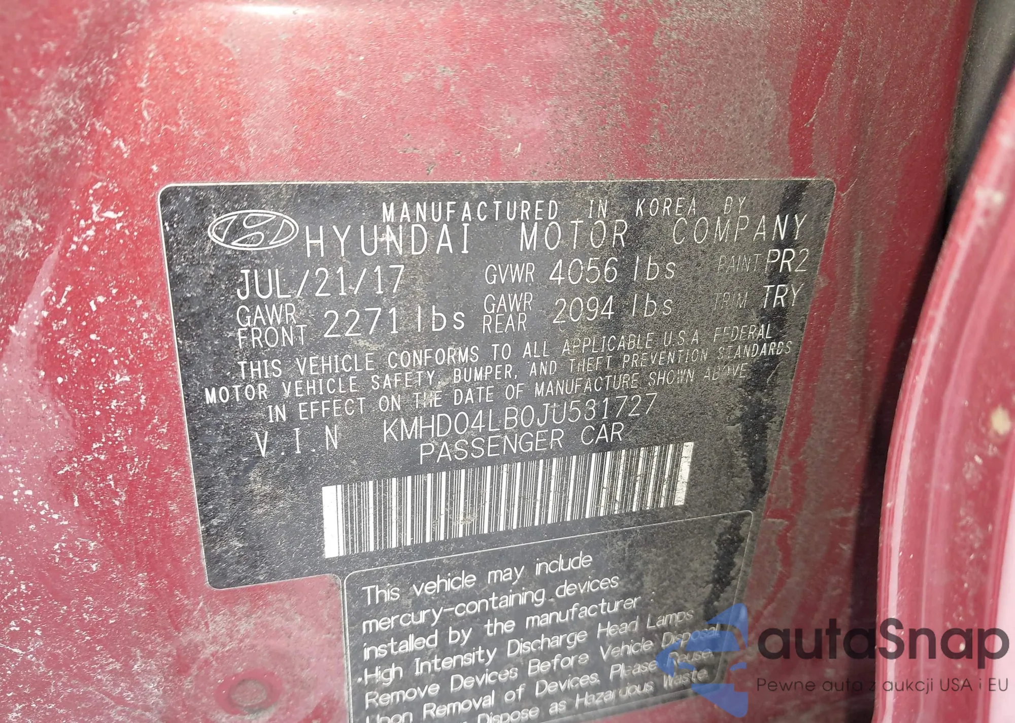 VIN: KMHD04LB0JU531727