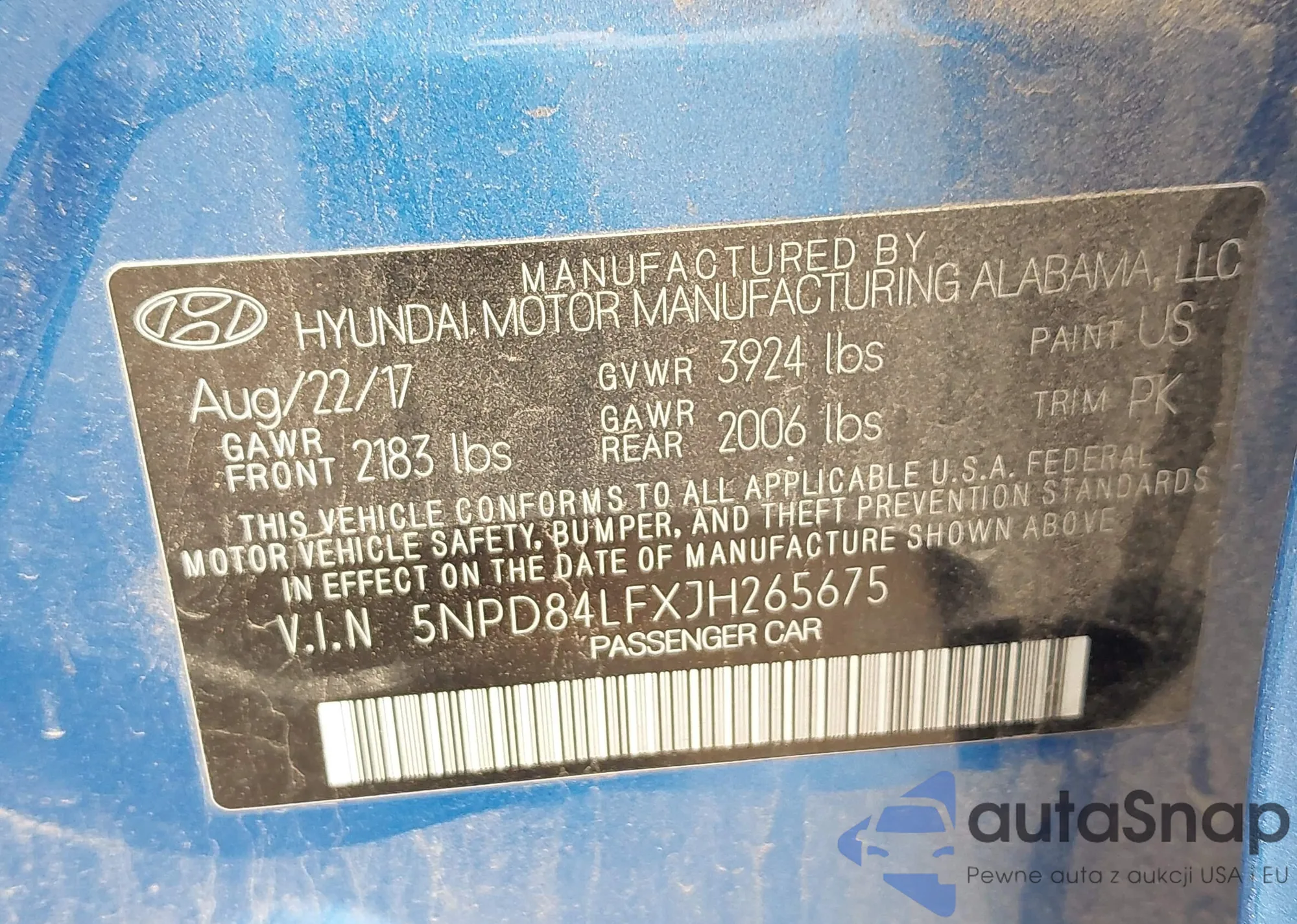 The car Hyundai Elantra 2018 (VIN 5NPD84LFXJH265675) has not been auctioned before. The documents are clean, and the mileage matches or is below the market average. Sold by an insurance company – we recommend purchase. Delivery to the port will take approx. 6–8 weeks.