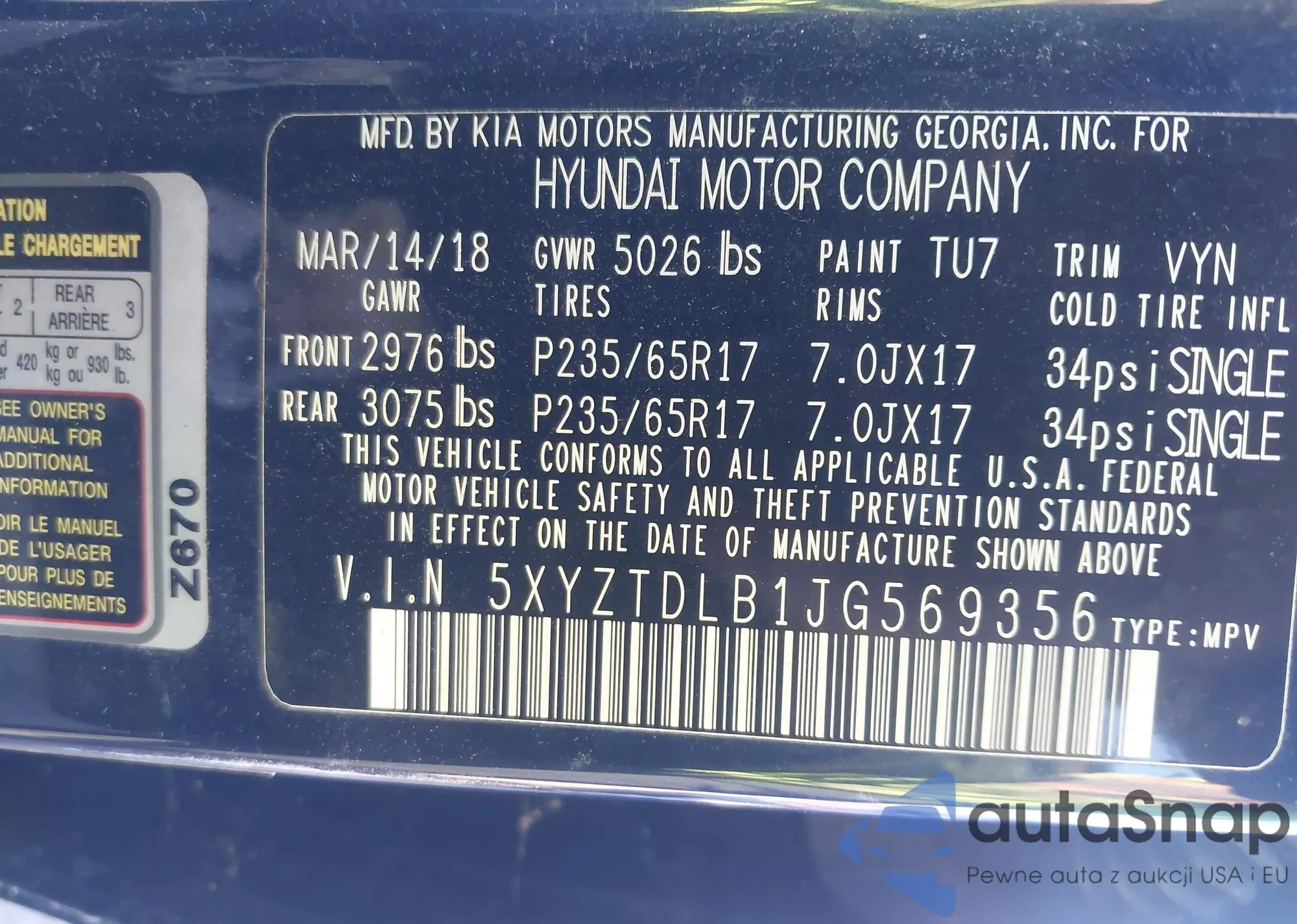 VIN: 5XYZTDLB1JG569356
