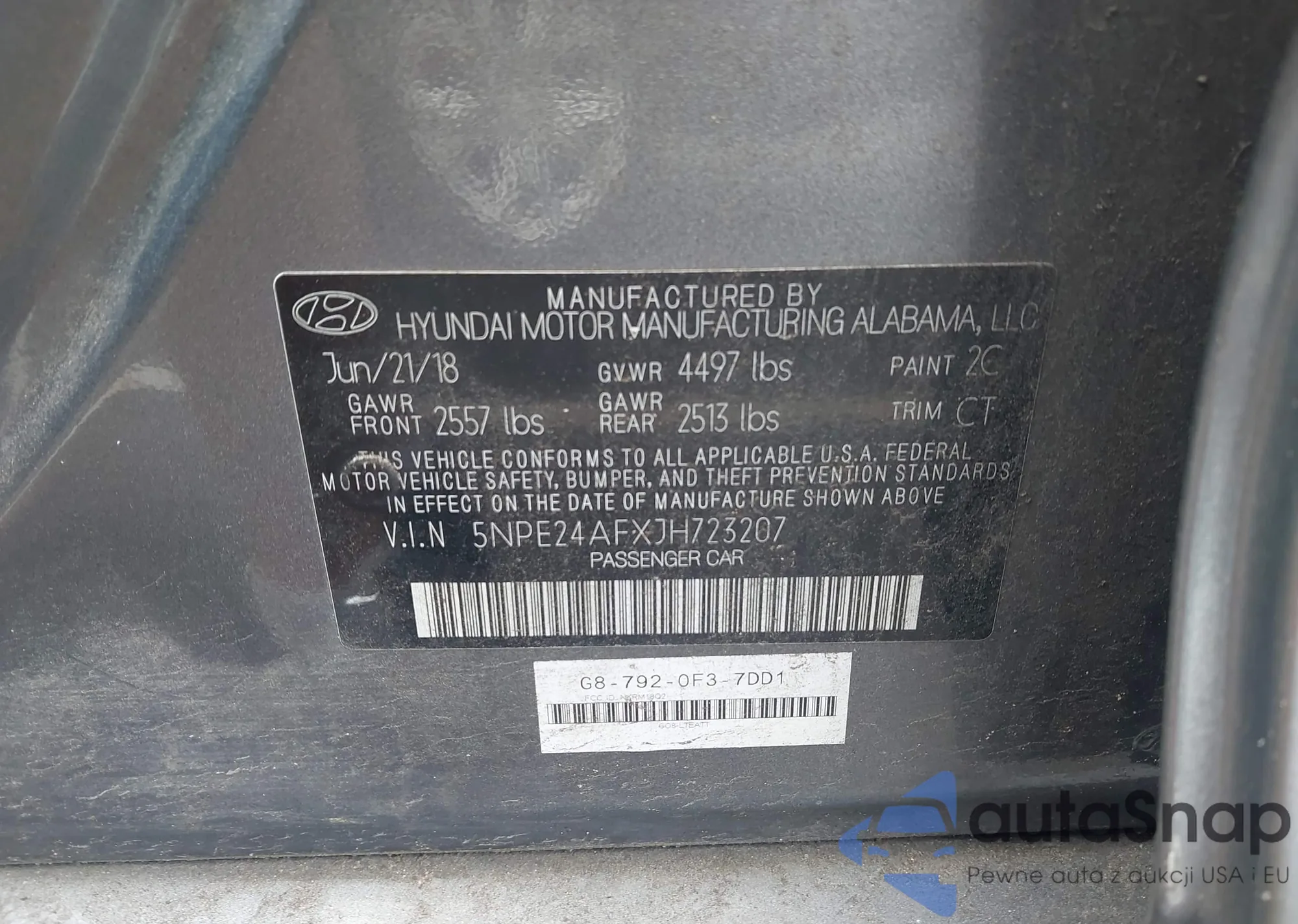 The car Hyundai Sonata 2018 (VIN 5NPE24AFXJH723207) has not been auctioned before. The documents are clean, and the mileage matches or is below the market average. Sold by an insurance company – we recommend purchase. Delivery to the port will take approx. 6–8 weeks.