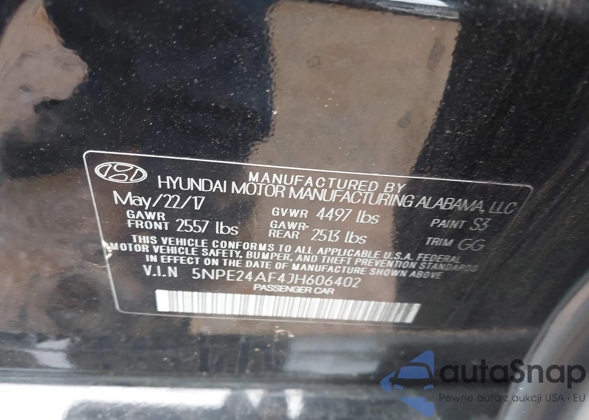 VIN: 5NPE24AF4JH606402