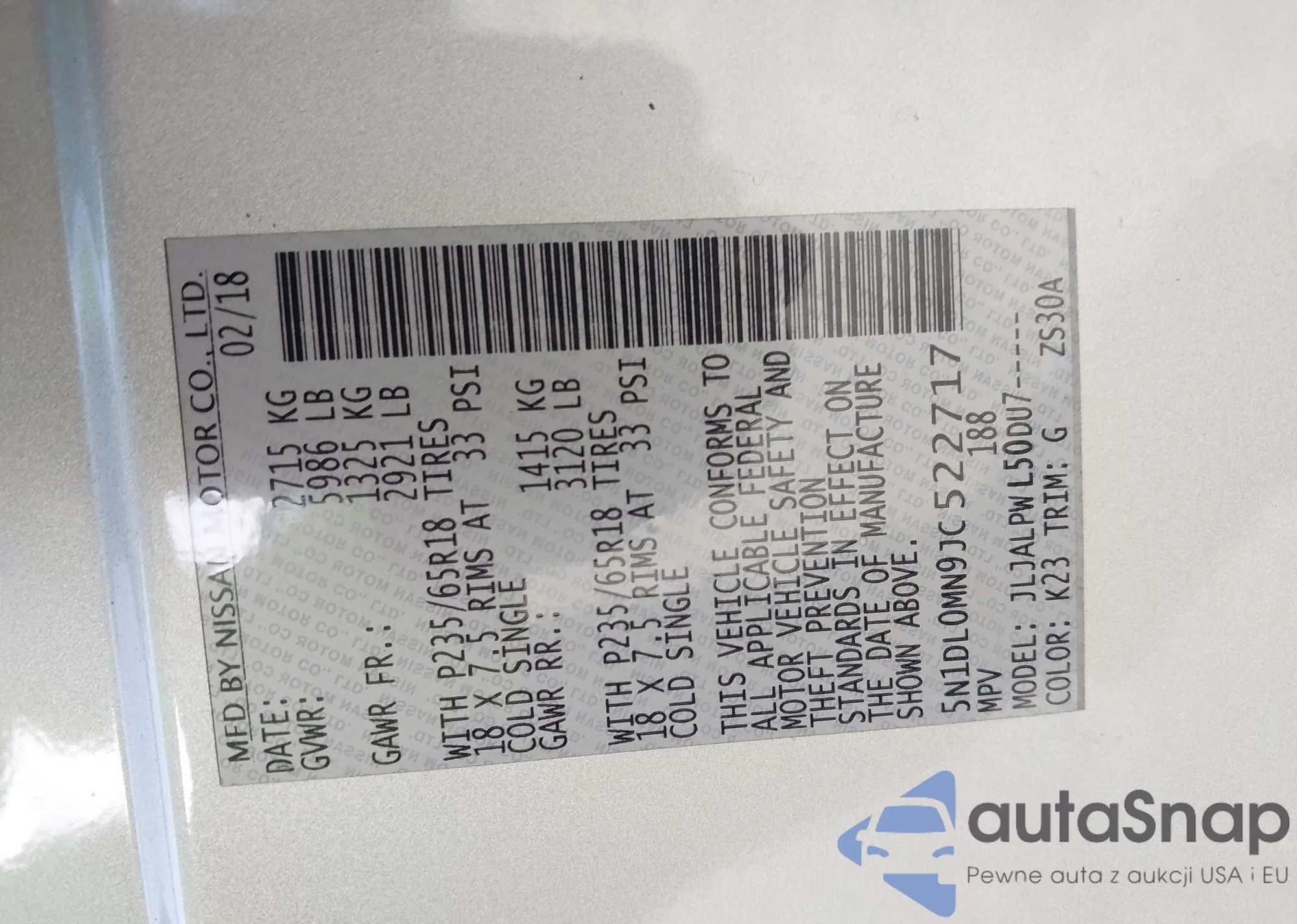 VIN: 5N1DL0MN9JC522717