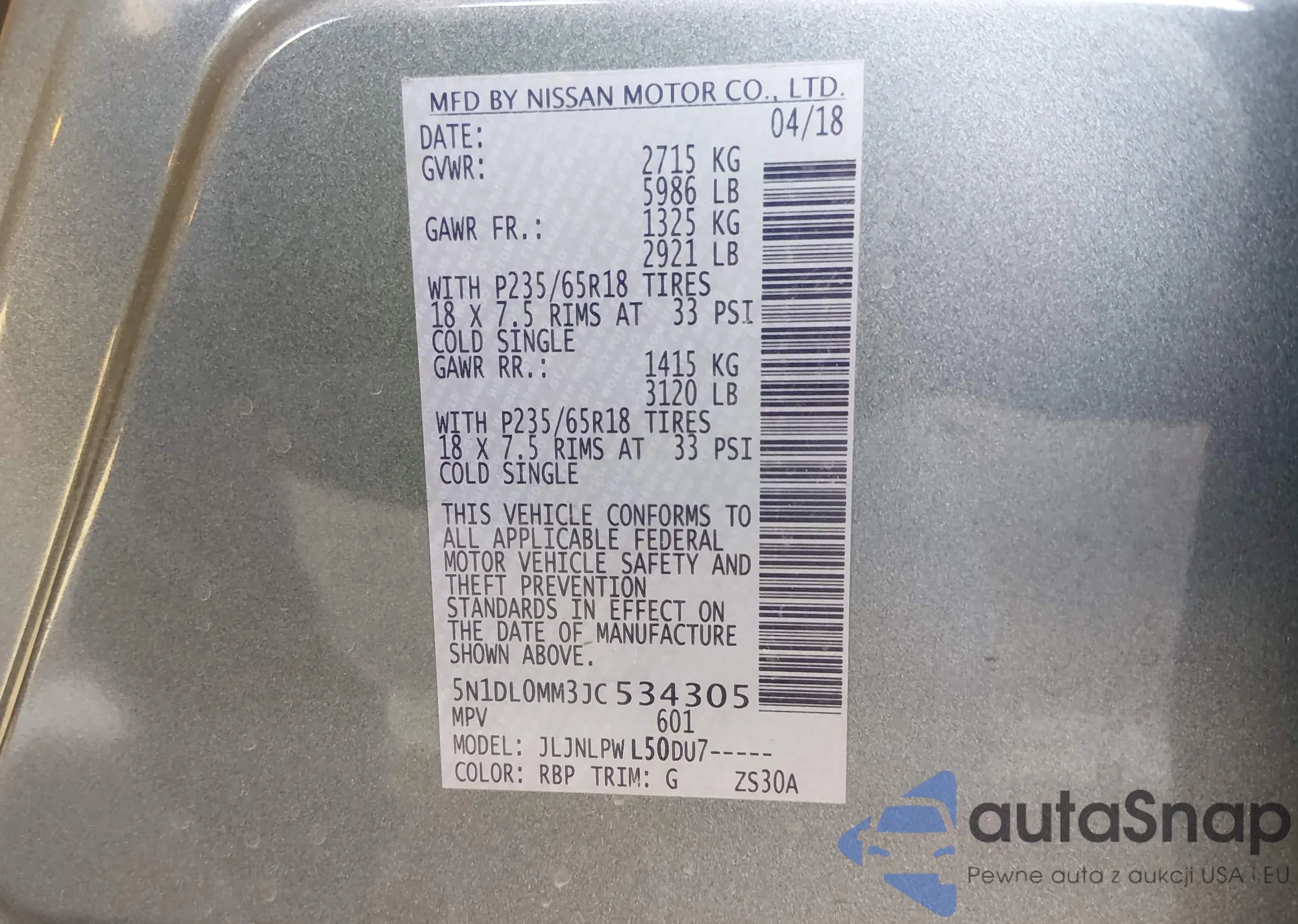 • VIN: 5N1DL0MM3JC534305