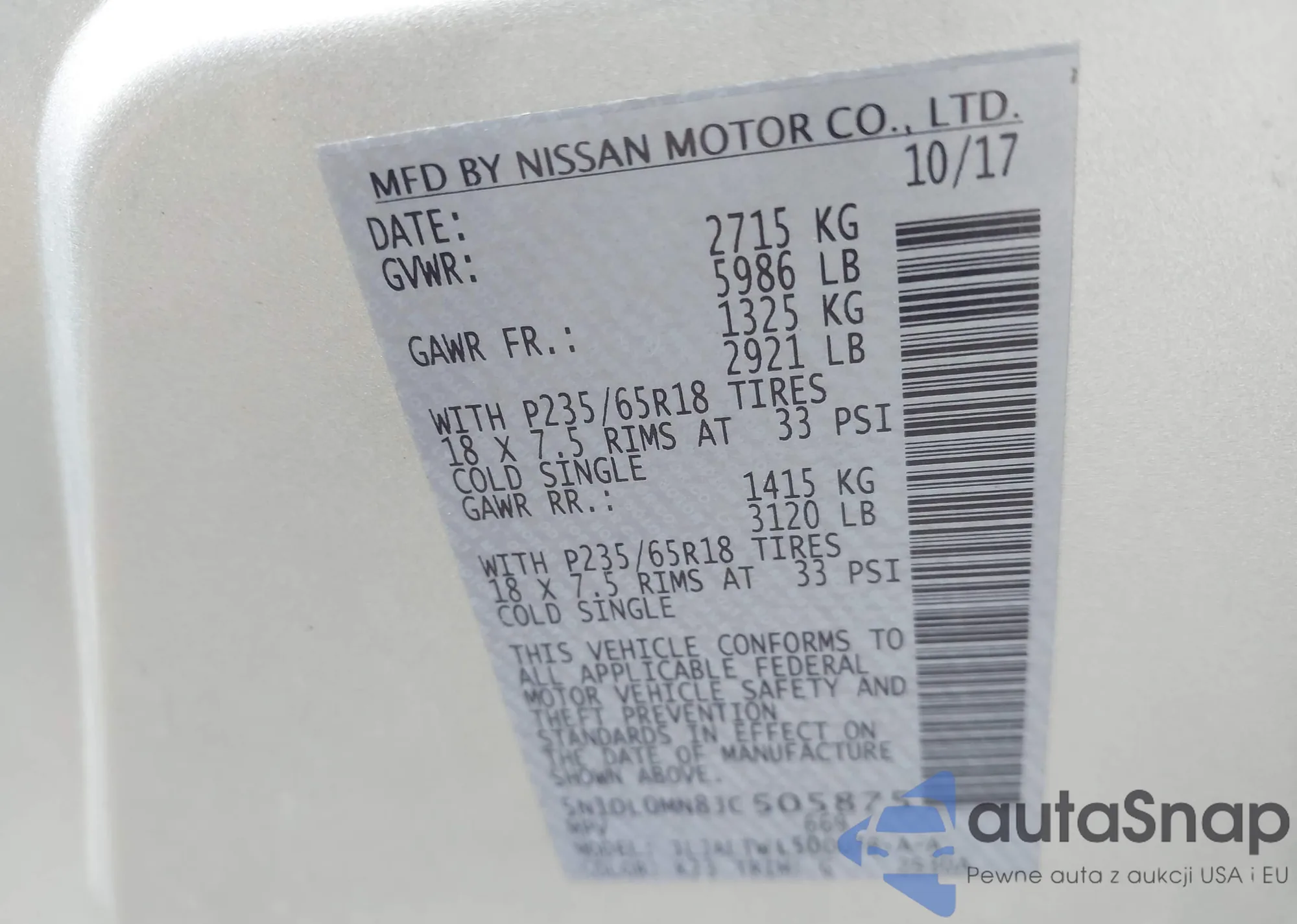VIN: 5N1DL0MN8JC505875