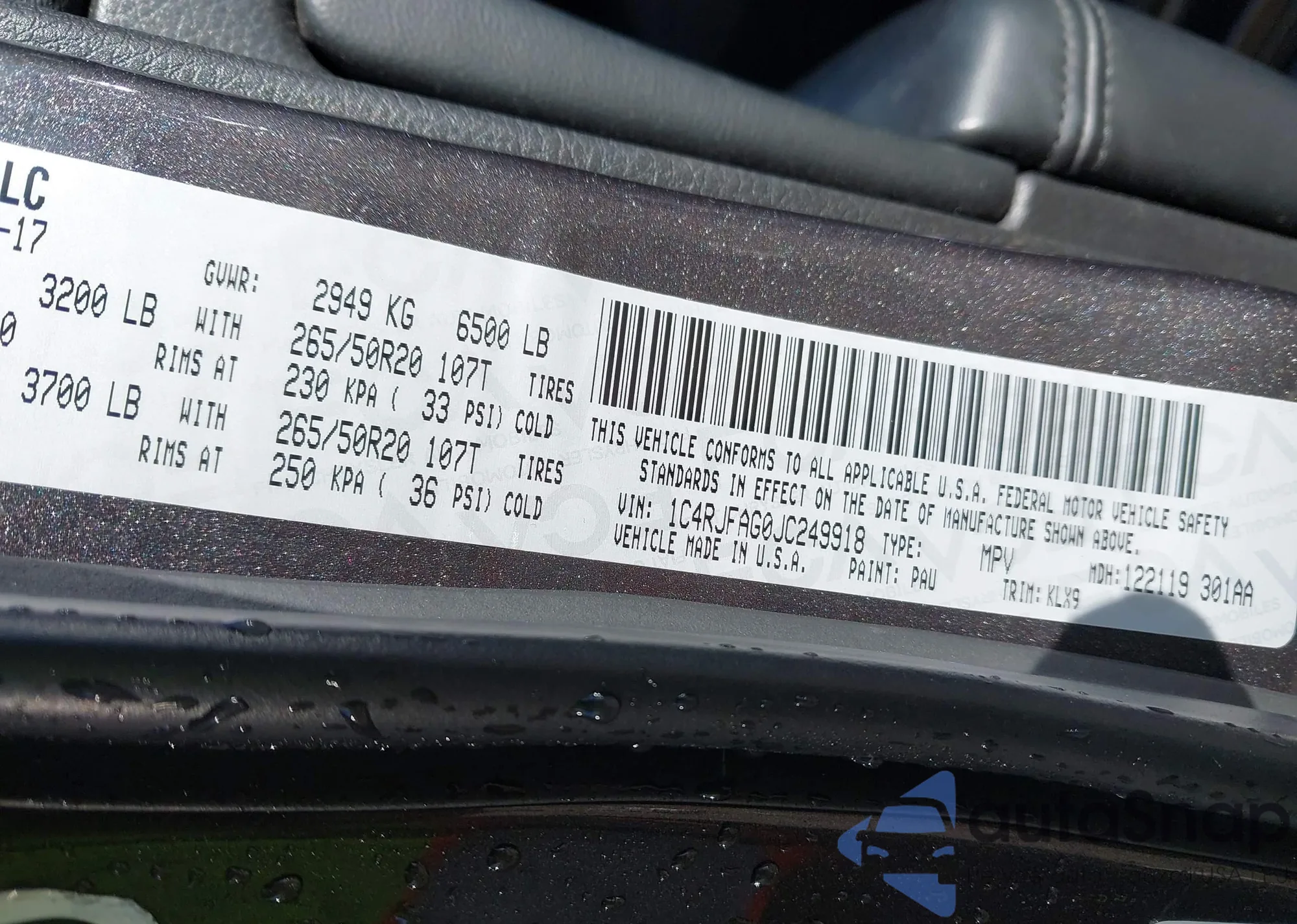 VIN: 1C4RJFAG0JC249918