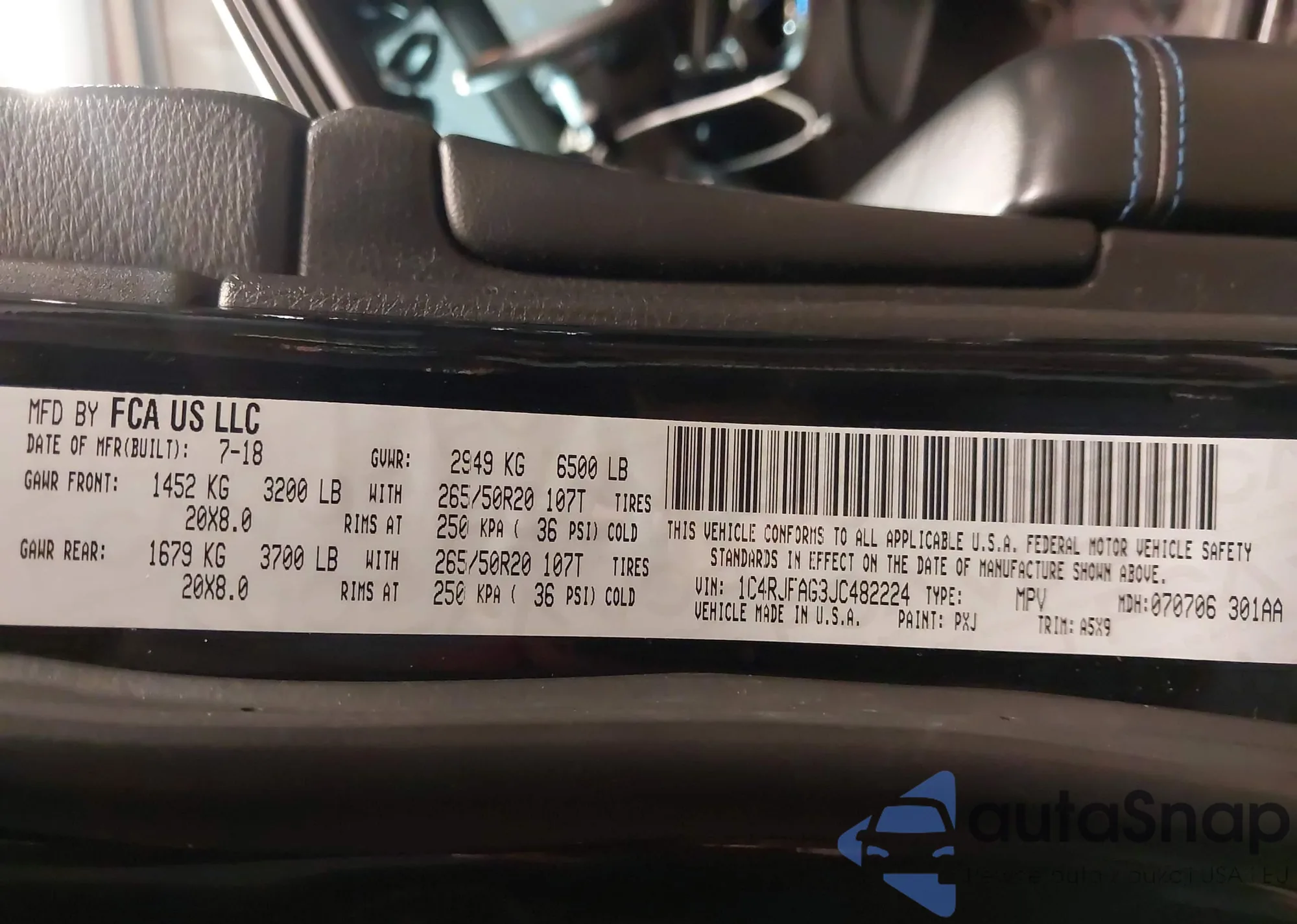 The car Jeep Grand Cherokee 2018 (VIN 1C4RJFAG3JC482224) has not been auctioned before. The documents are clean, and the mileage matches or is below the market average. Sold by an insurance company – we recommend purchase. Delivery to the port will take approx. 6–8 weeks.