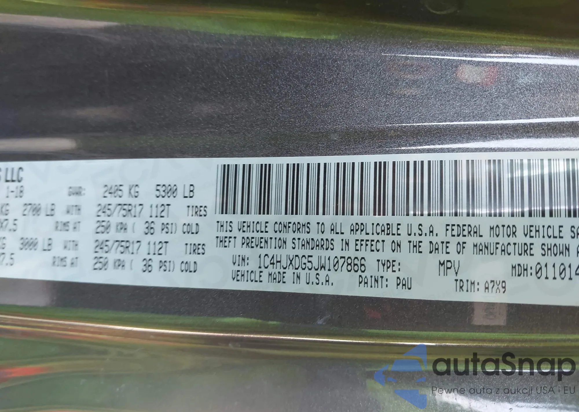 VIN: 1C4HJXDG5JW107866