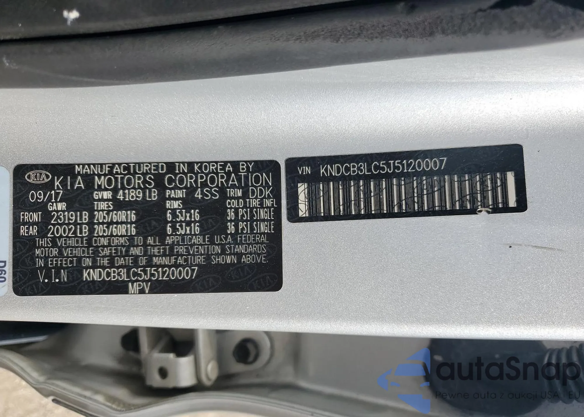 VIN: KNDCB3LC5J5120007