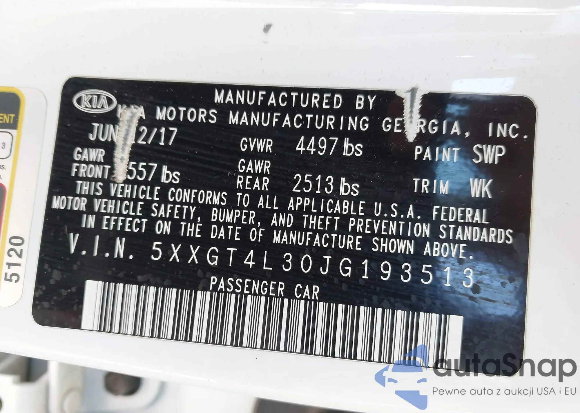 VIN: 5XXGT4L30JG193513