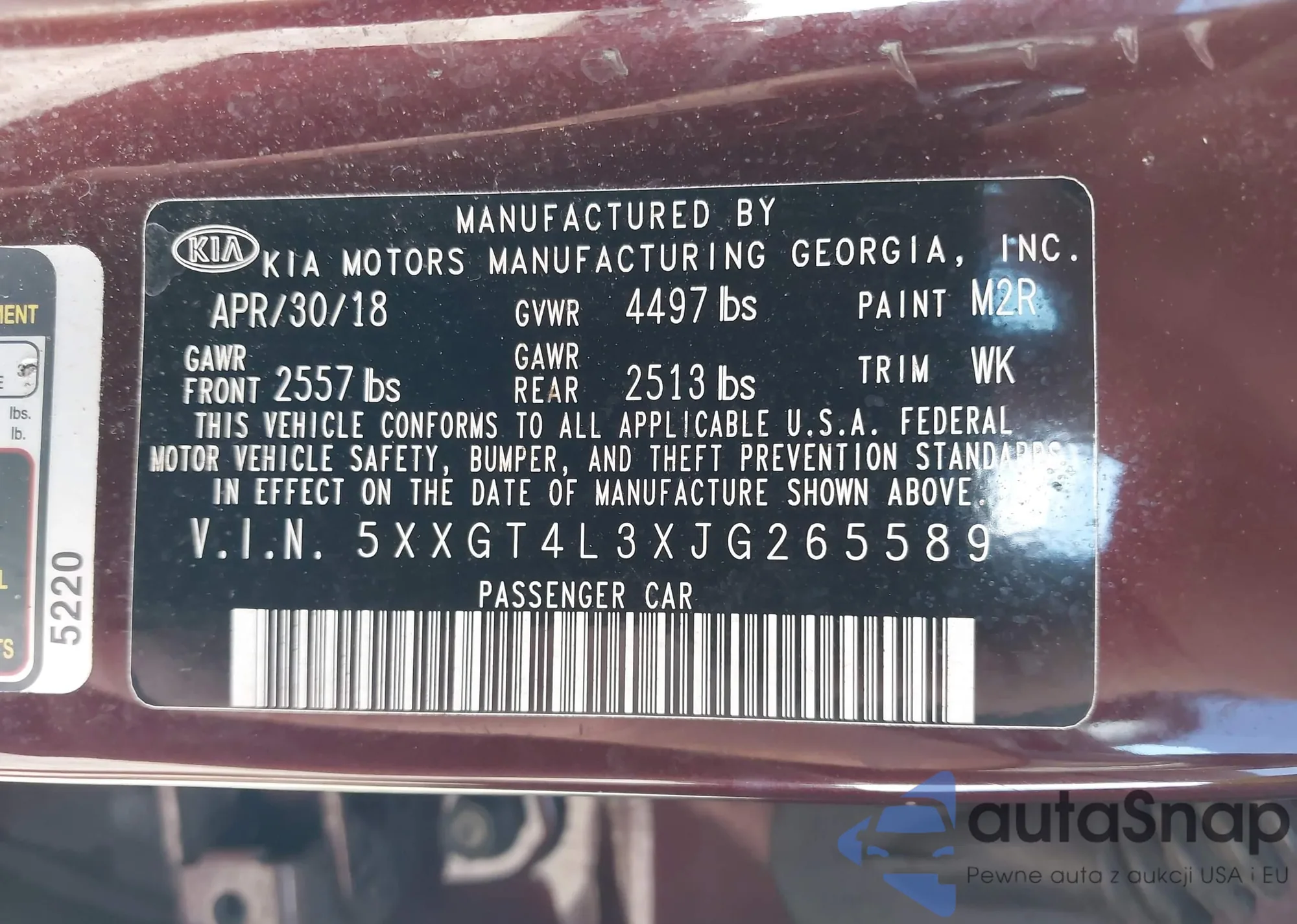 VIN: 5XXGT4L3XJG265589