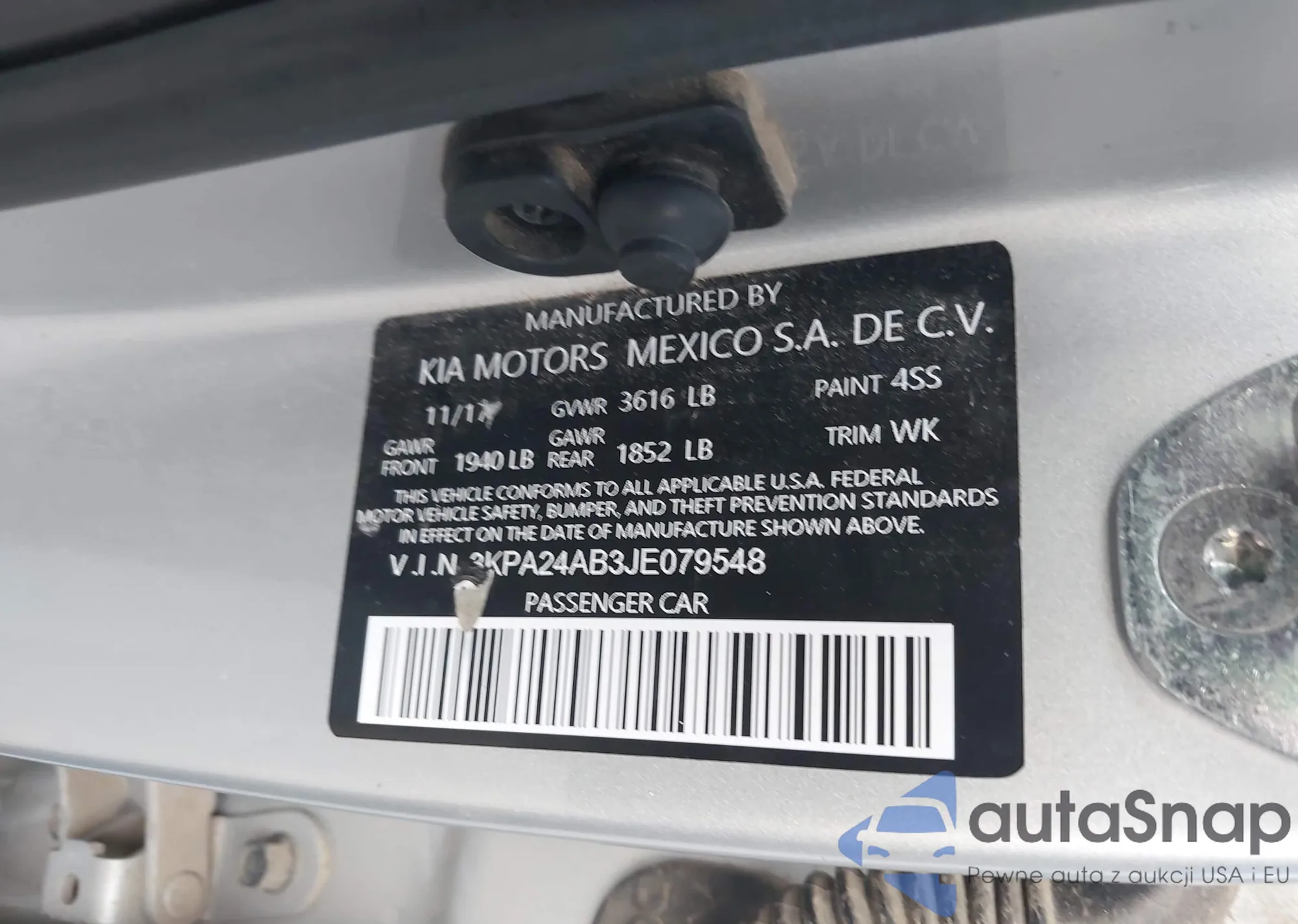 The car Kia Rio 2018 (VIN 3KPA24AB3JE079548) has not been auctioned before. The documents are clean, and the mileage matches or is below the market average. Sold by an insurance company – we recommend purchase. Delivery to the port will take approx. 6–8 weeks.
