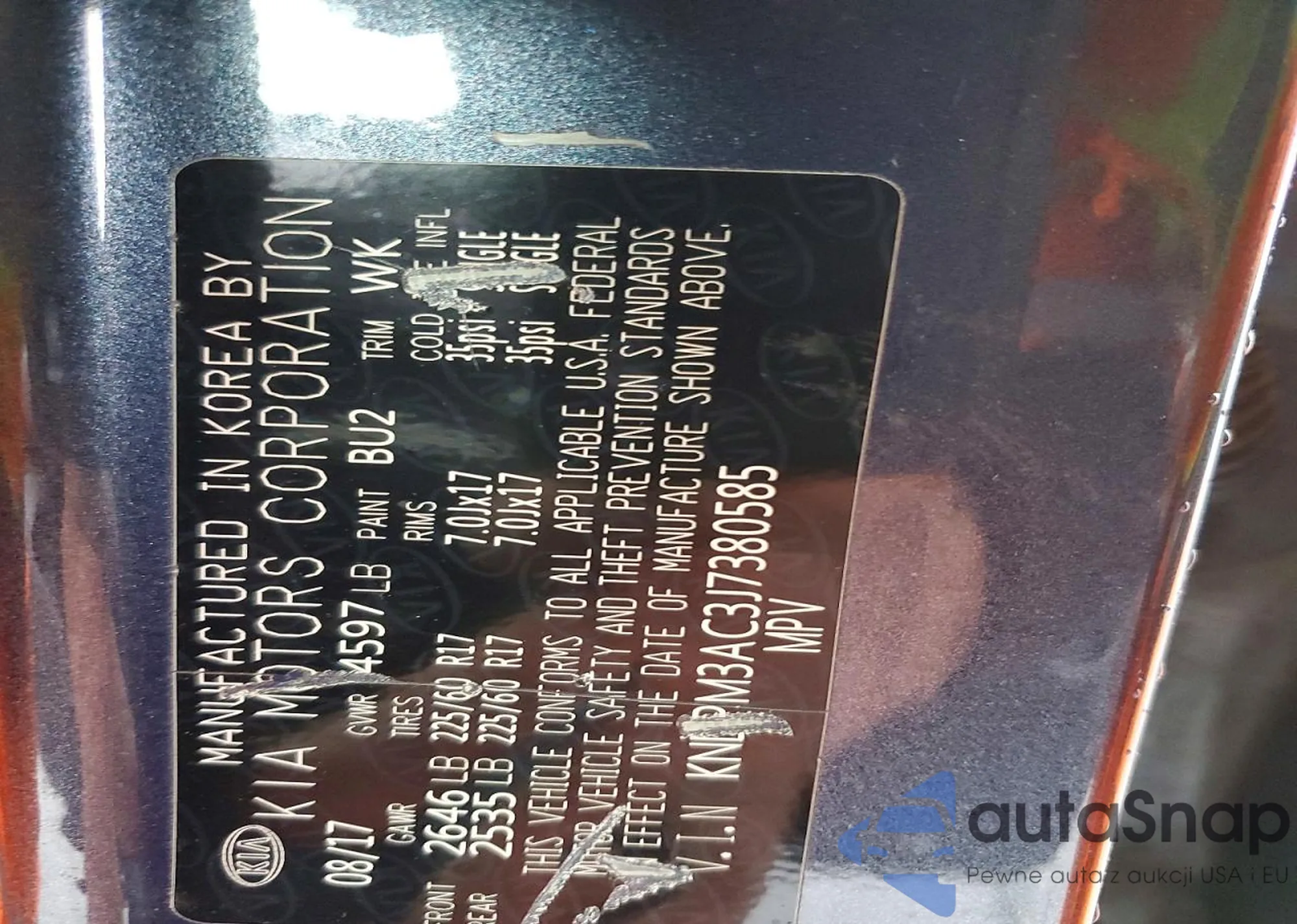The car Kia Sportage 2018 (VIN KNDPM3AC3J7380585) has not been auctioned before. The documents are clean, and the mileage matches or is below the market average. Sold by an insurance company – we recommend purchase. Delivery to the port will take approx. 6–8 weeks.