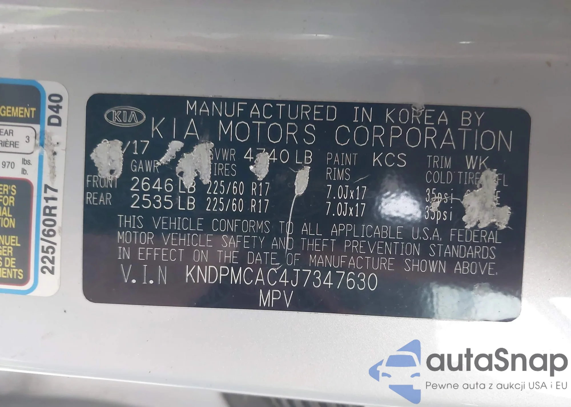 The car Kia Sportage 2018 (VIN KNDPMCAC4J7347630) has not been auctioned before. The documents are clean, and the mileage matches or is below the market average. Sold by an insurance company – we recommend purchase. Delivery to the port will take approx. 6–8 weeks.