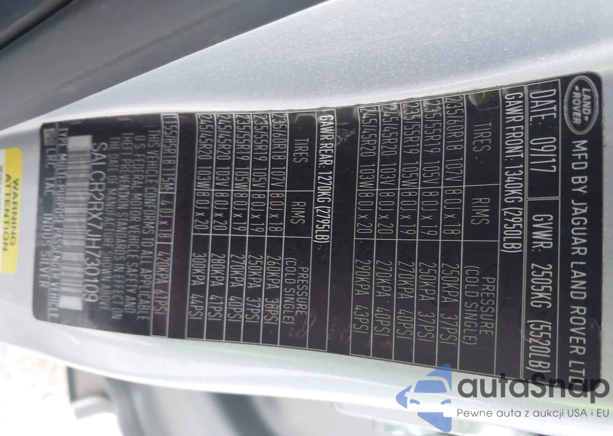 The car Land Rover Discovery Sport 2018 (VIN SALCR2RX7JH730109) has documents that prevent registration. Export and registration may be difficult. Contact AutaSnap experts to find alternatives.