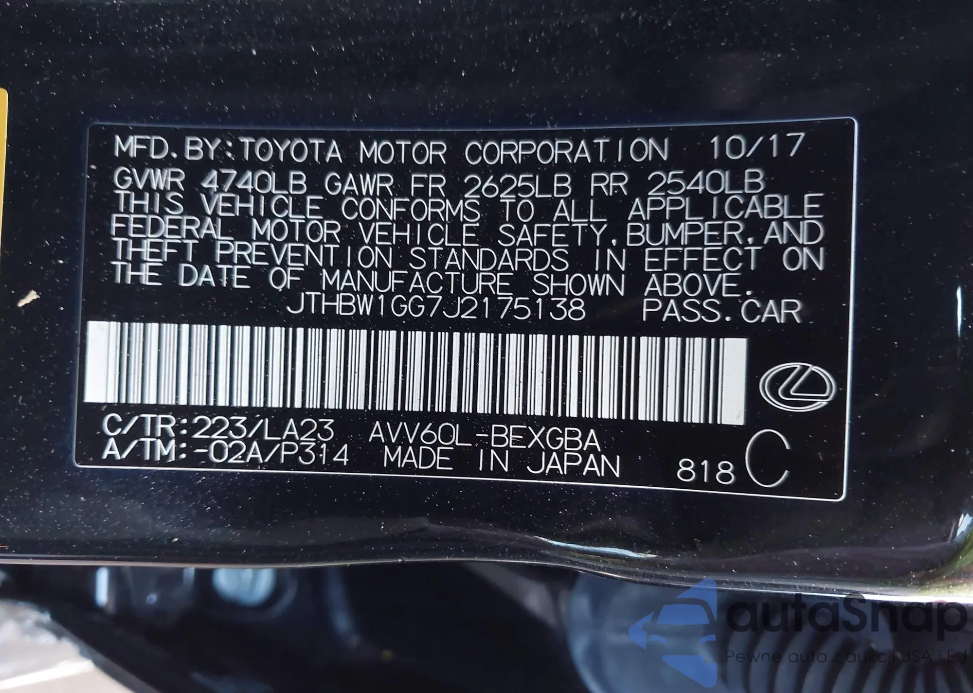 VIN: JTHBW1GG7J2175138