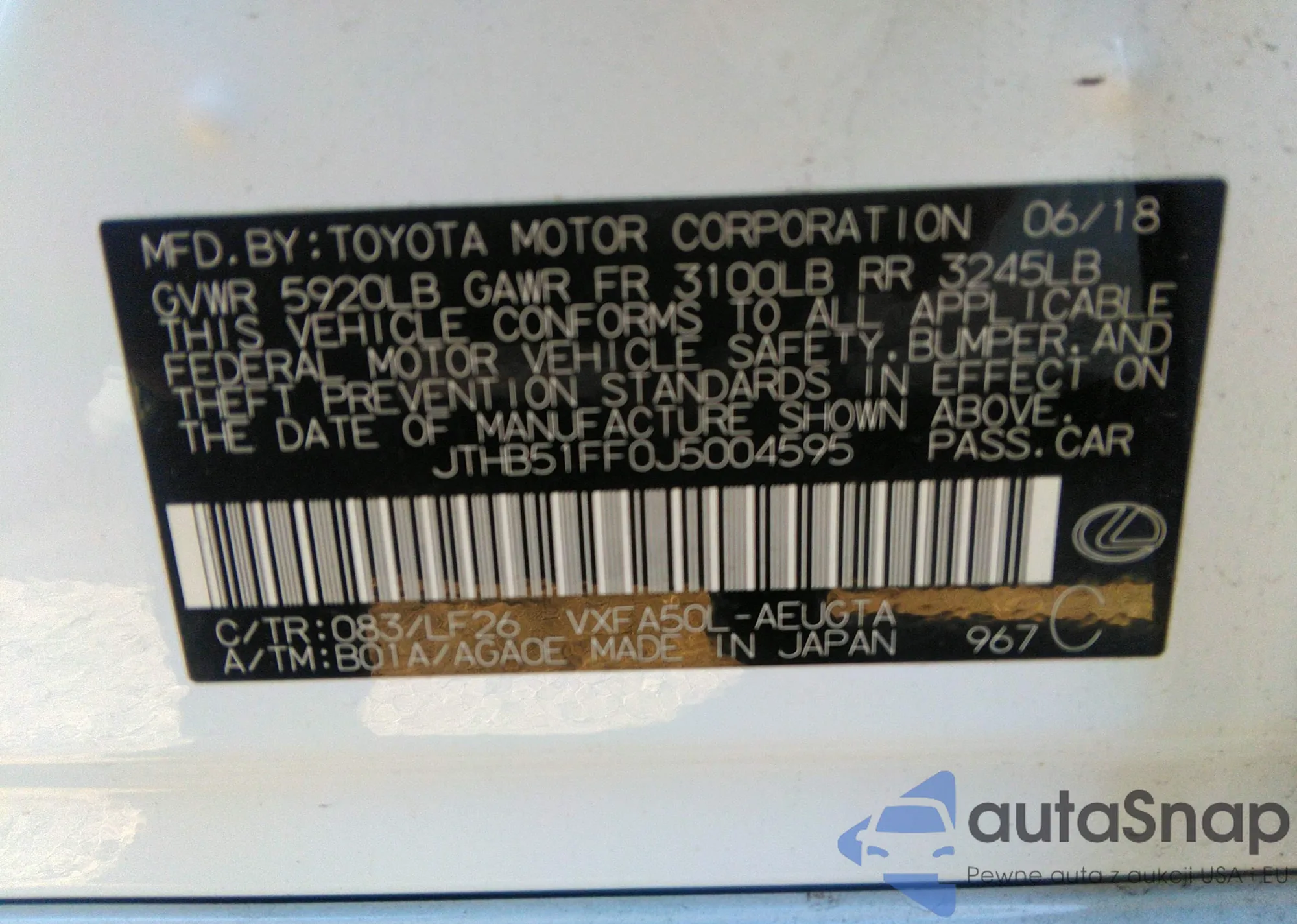 VIN: JTHB51FF0J5004595