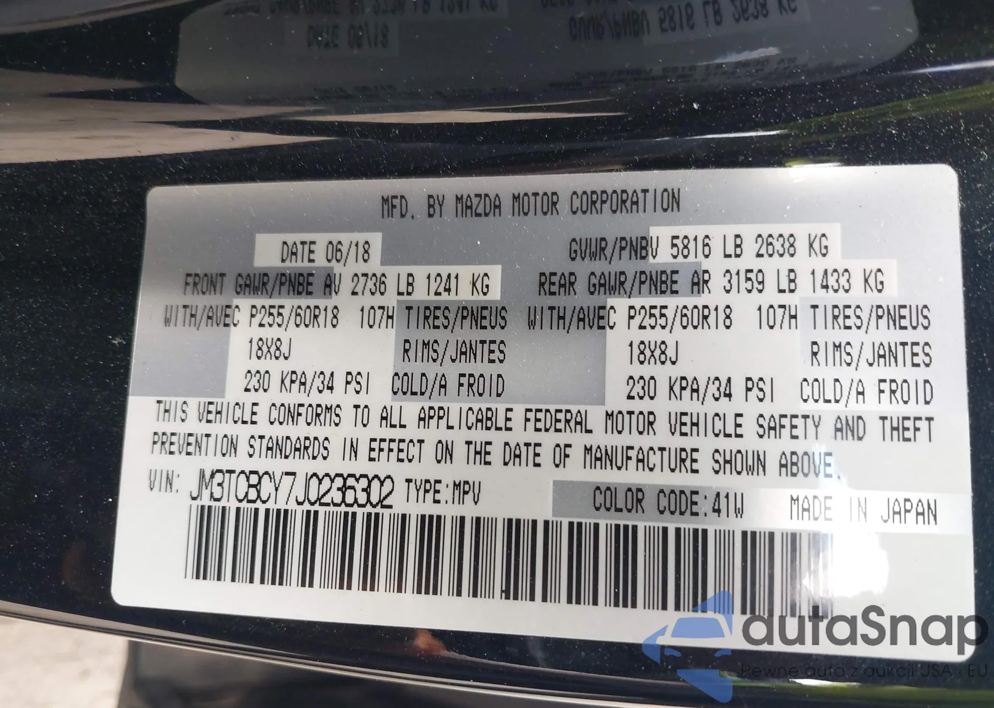 VIN: JM3TCBCY7J0236302