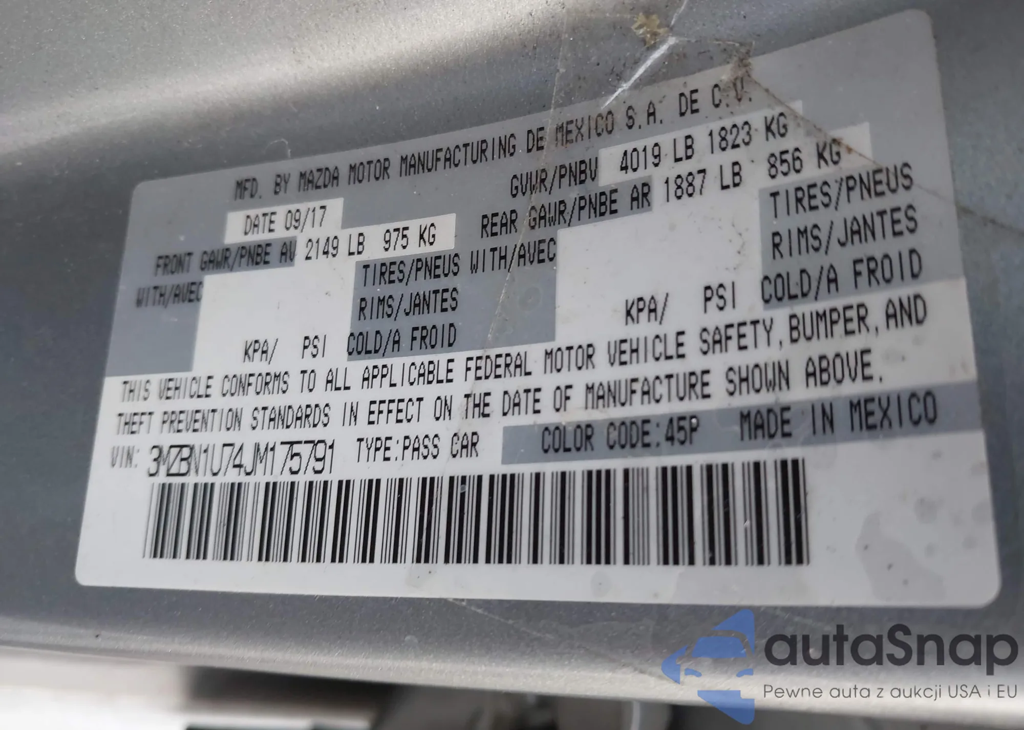 VIN: 3MZBN1U74JM175791