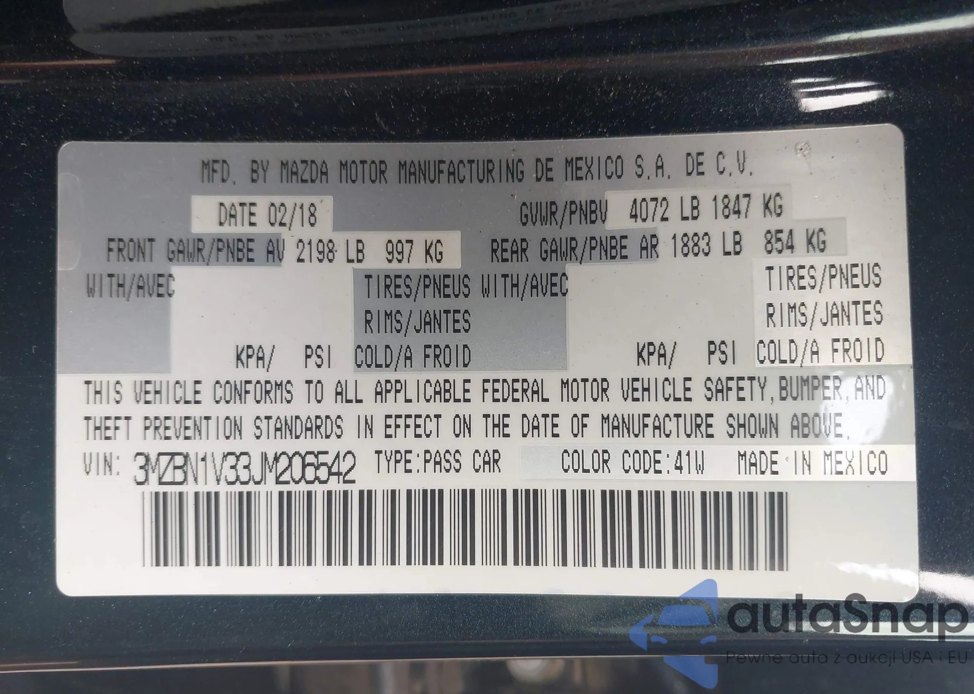 VIN: 3MZBN1V33JM206542