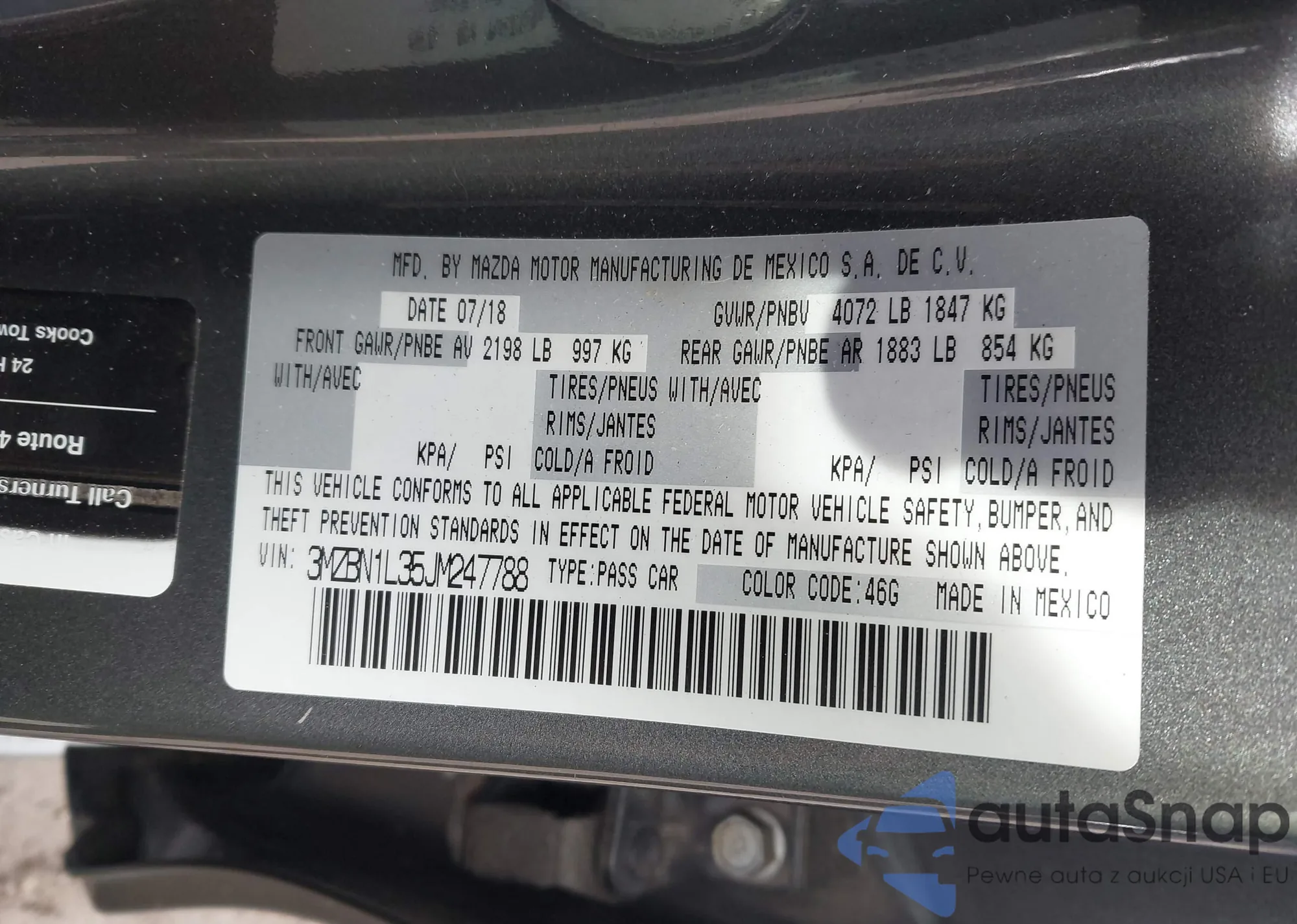 The car Mazda 3 2018 (VIN 3MZBN1L35JM247788) has not been auctioned before. The documents are clean, and the mileage matches or is below the market average. Sold by an insurance company – we recommend purchase. Delivery to the port will take approx. 6–8 weeks.