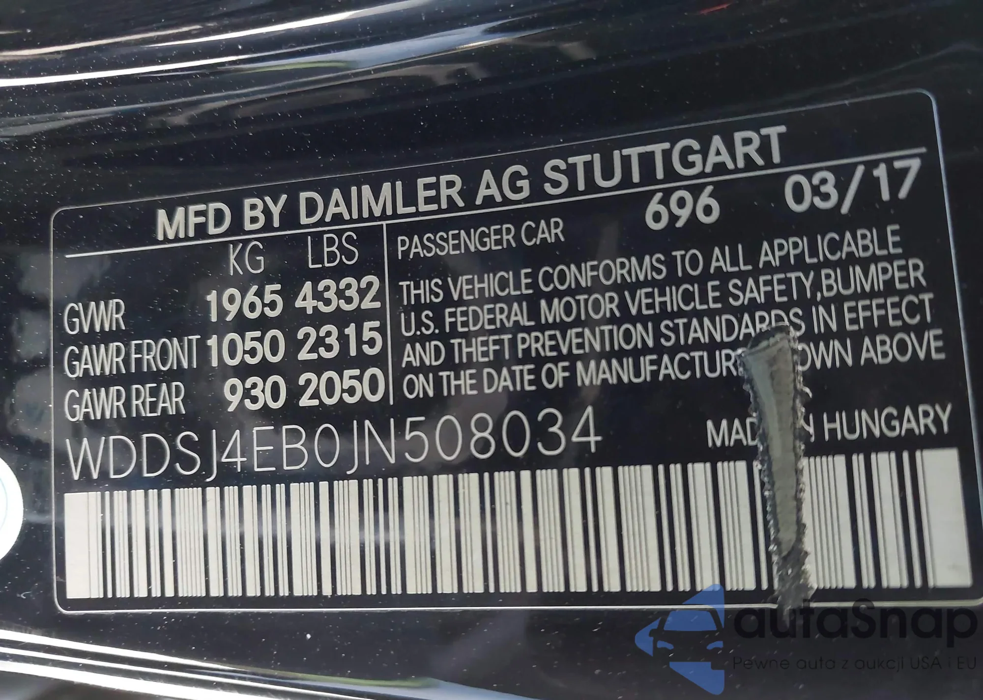 The car Mercedes-Benz CLA-klasse 2018 (VIN WDDSJ4EB0JN508034) has not been auctioned before. The documents are clean, and the mileage matches or is below the market average. Sold by an insurance company – we recommend purchase. Delivery to the port will take approx. 6–8 weeks.