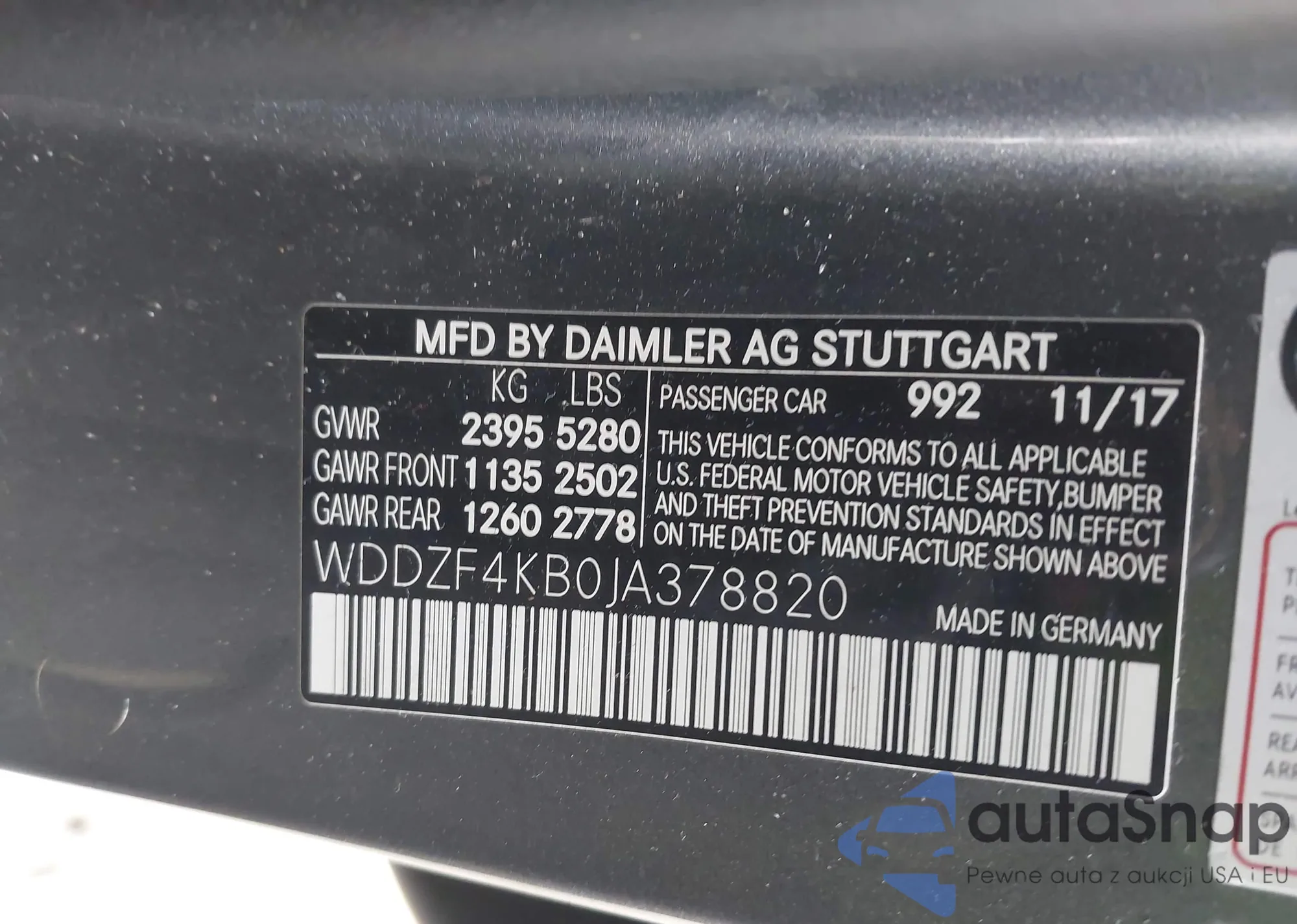 • VIN: WDDZF4KB0JA378820