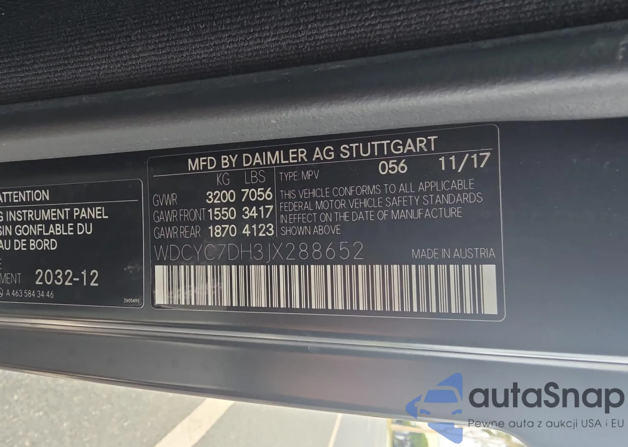 VIN: WDCYC7DH3JX288652