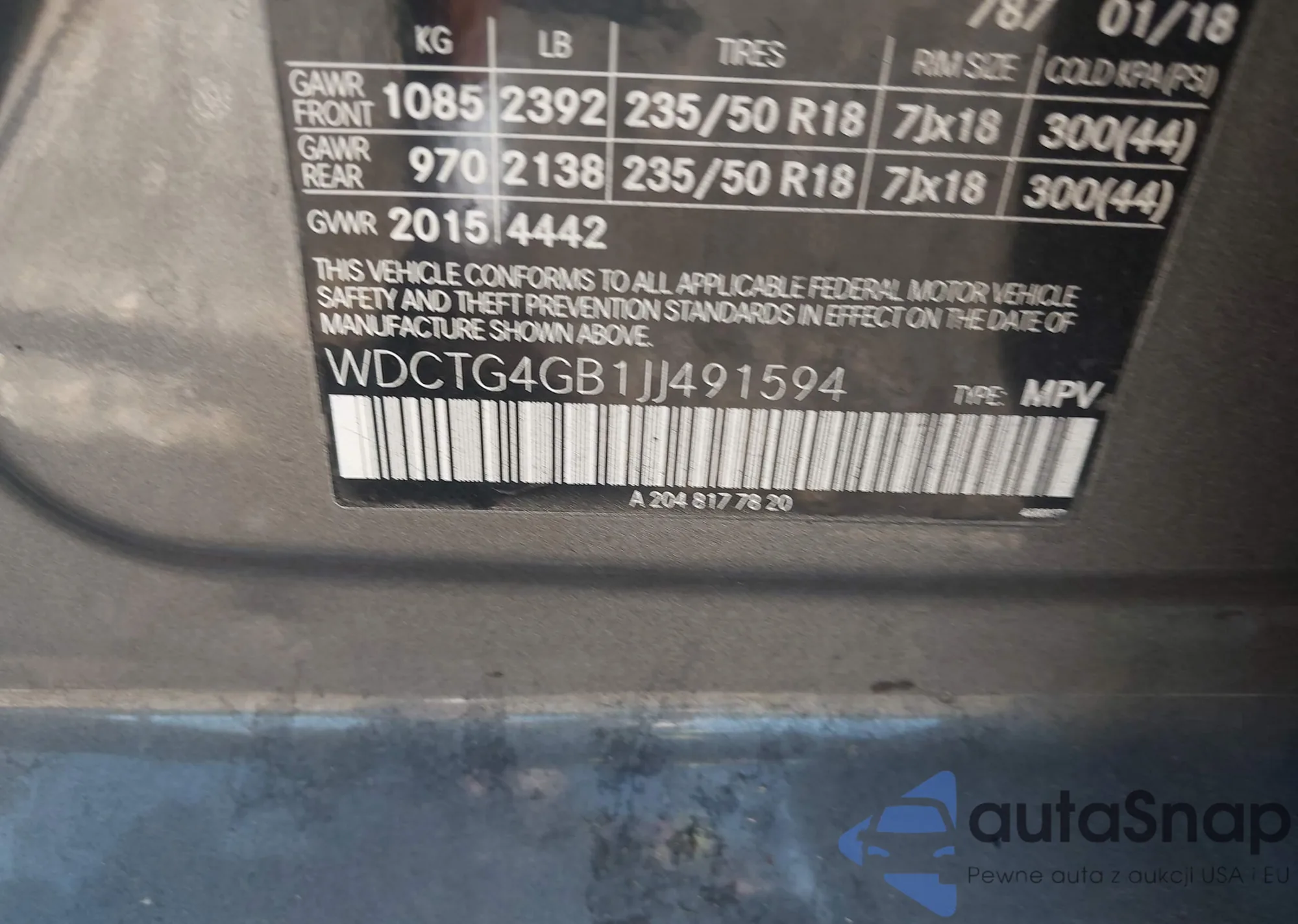 The car Mercedes-Benz GLA-klasse 2018 (VIN WDCTG4GB1JJ491594) has not been auctioned before. The documents are clean, and the mileage matches or is below the market average. Sold by an insurance company – we recommend purchase. Delivery to the port will take approx. 6–8 weeks.