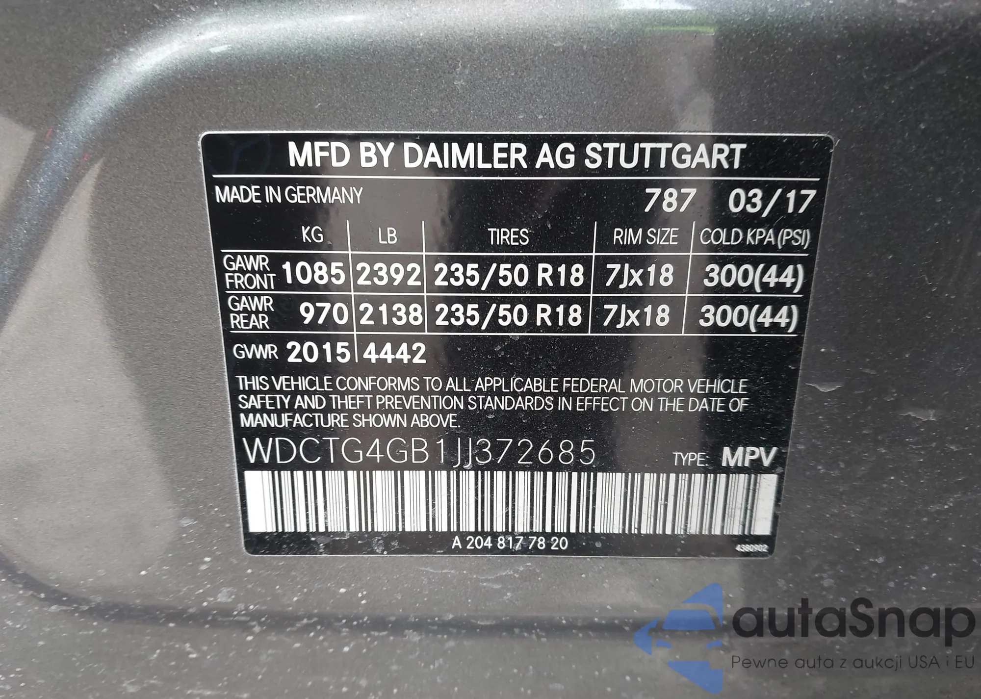 VIN: WDCTG4GB1JJ372685