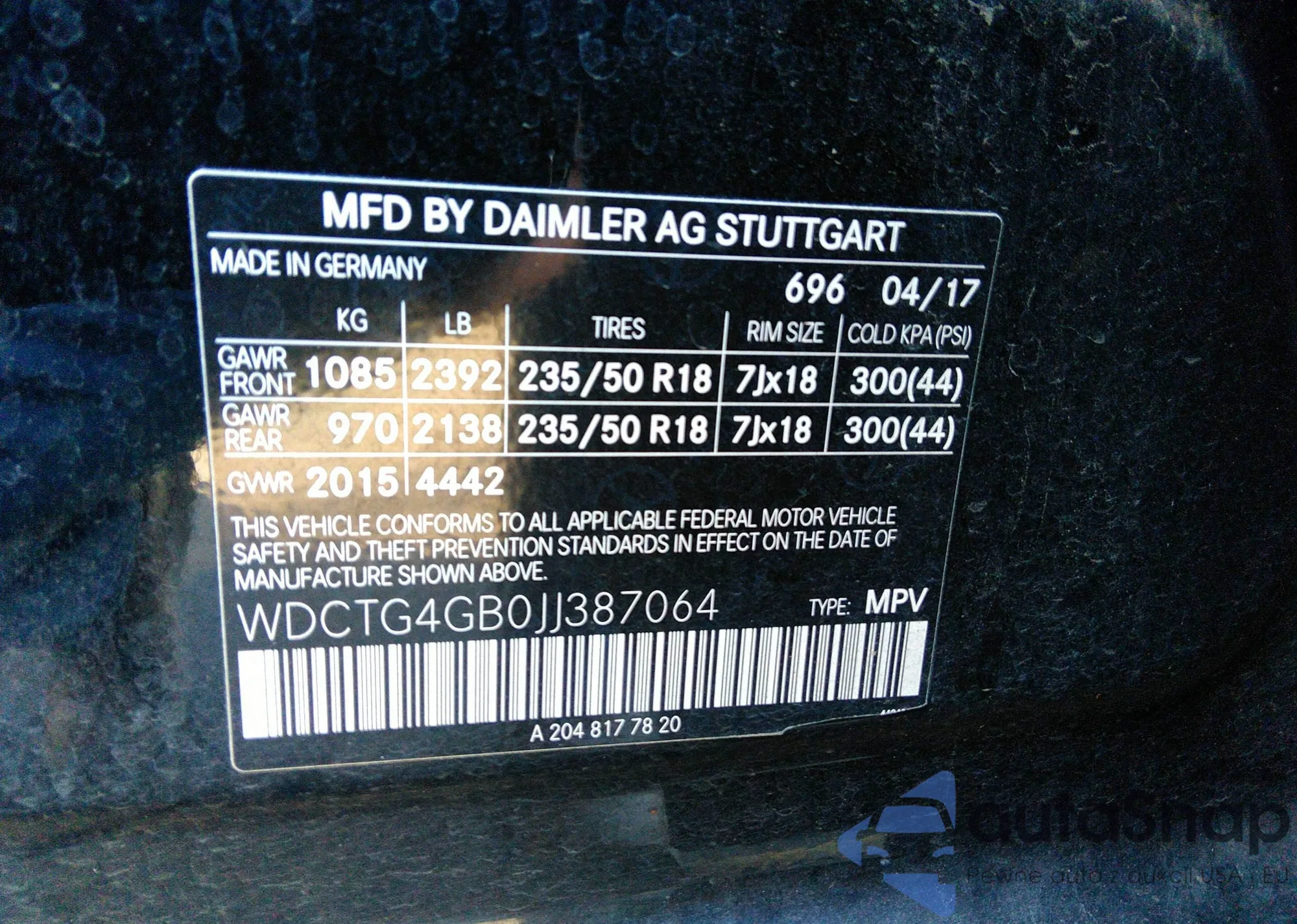VIN: WDCTG4GB0JJ387064