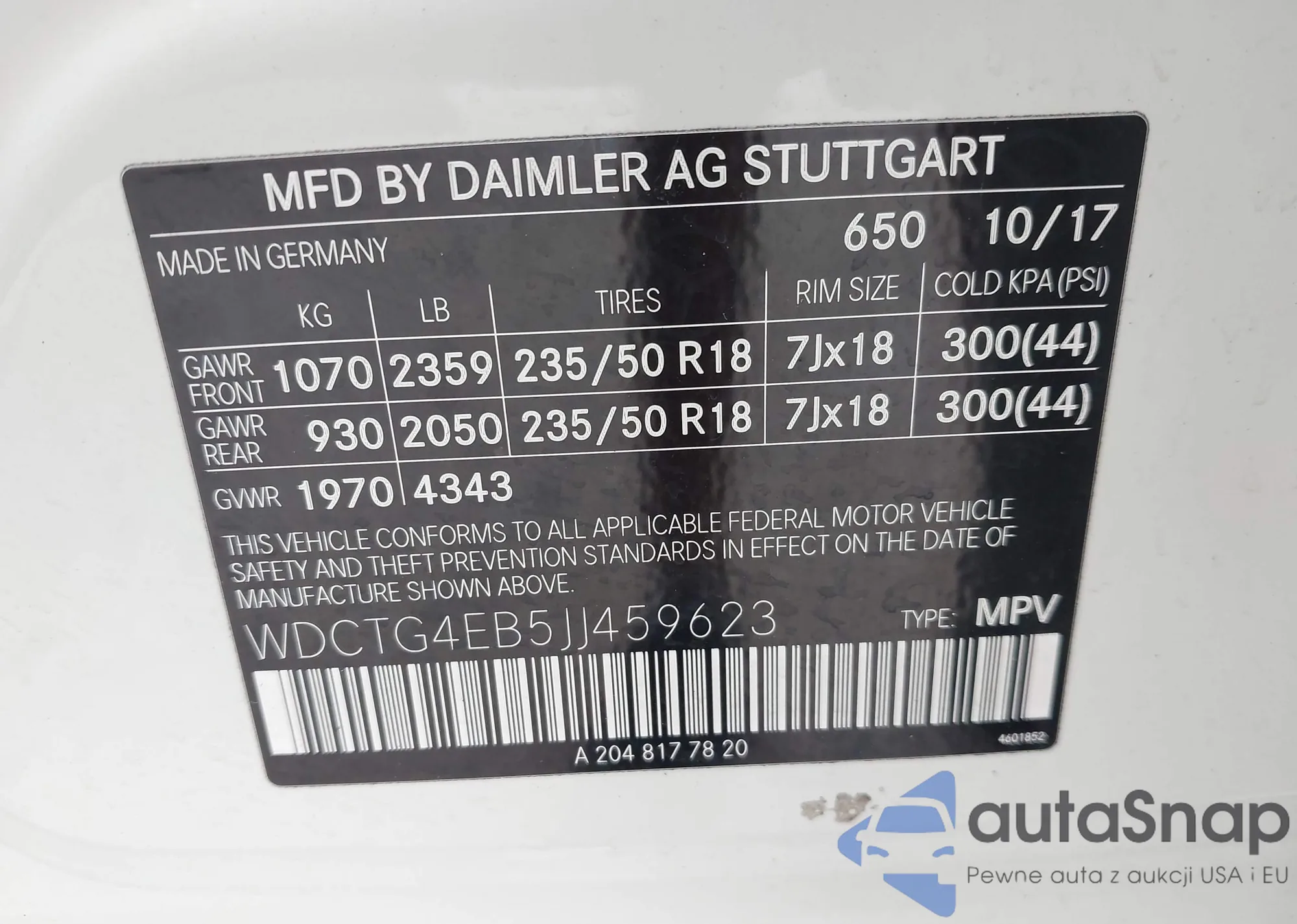 VIN: WDCTG4EB5JJ459623