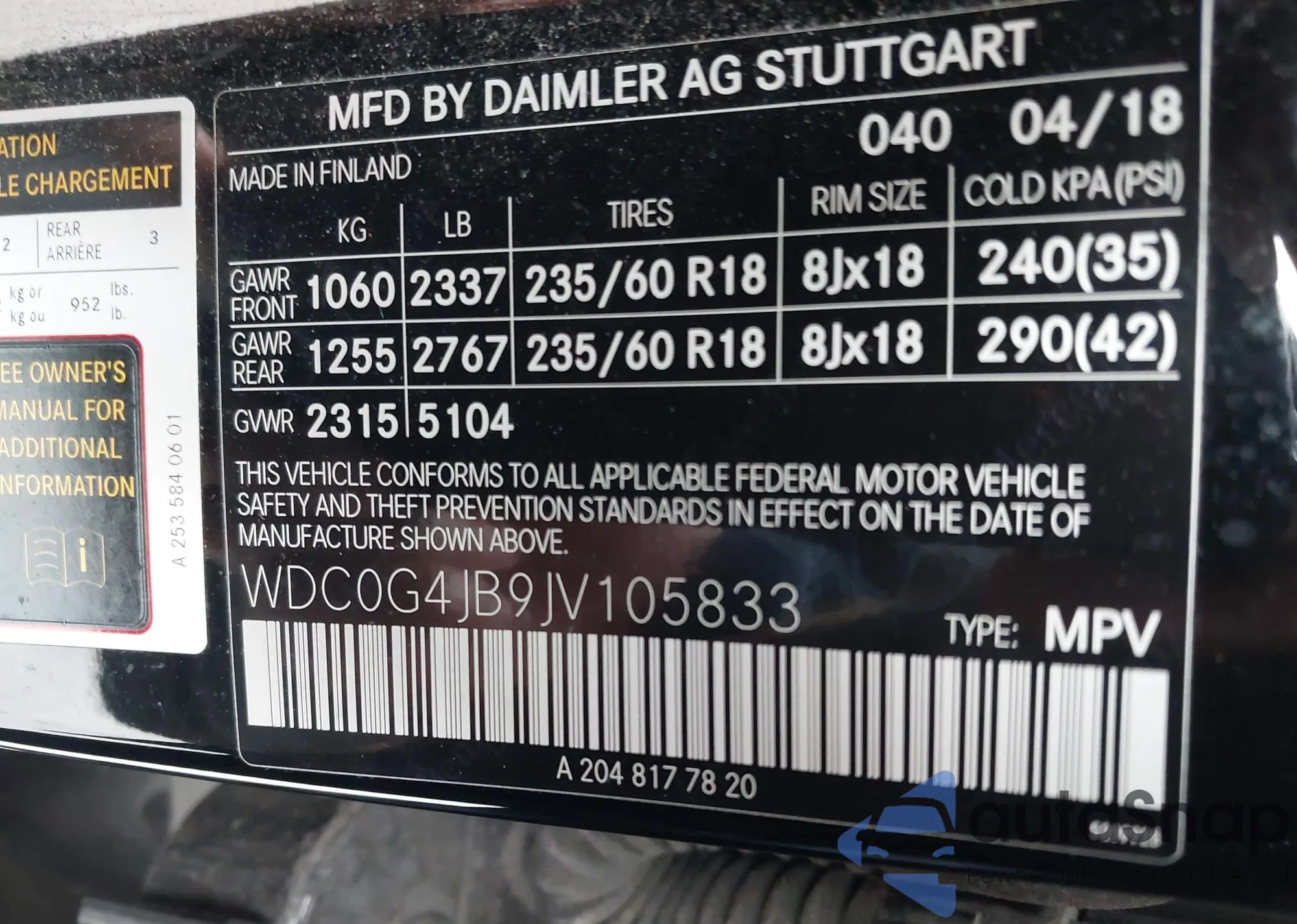 • VIN: WDC0G4JB9JV105833