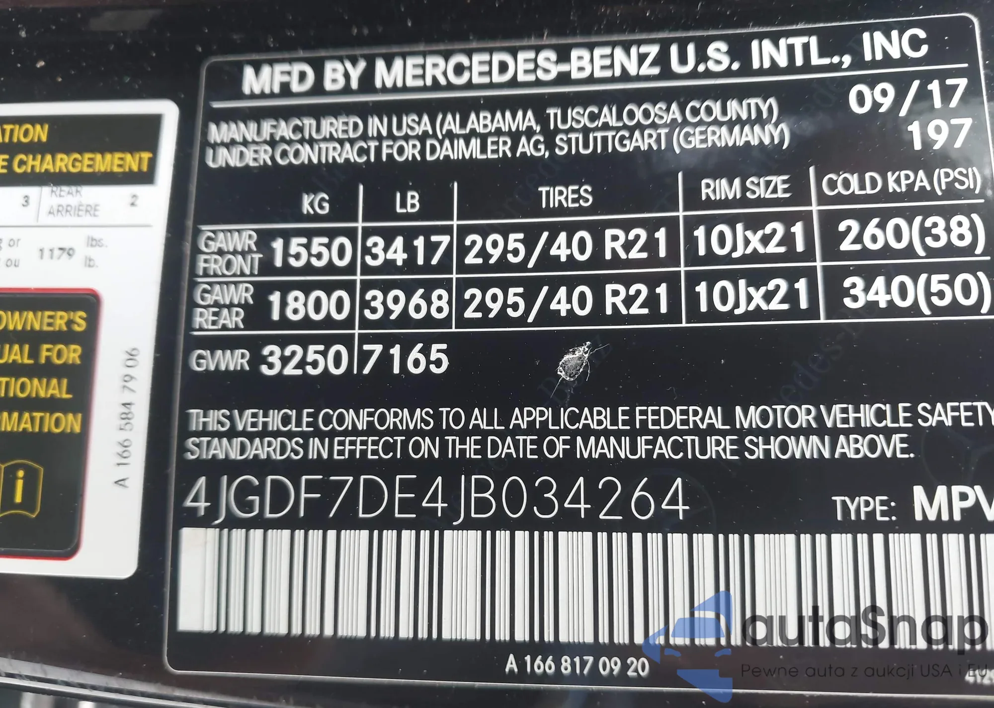 • VIN: 4JGDF7DE4JB034264