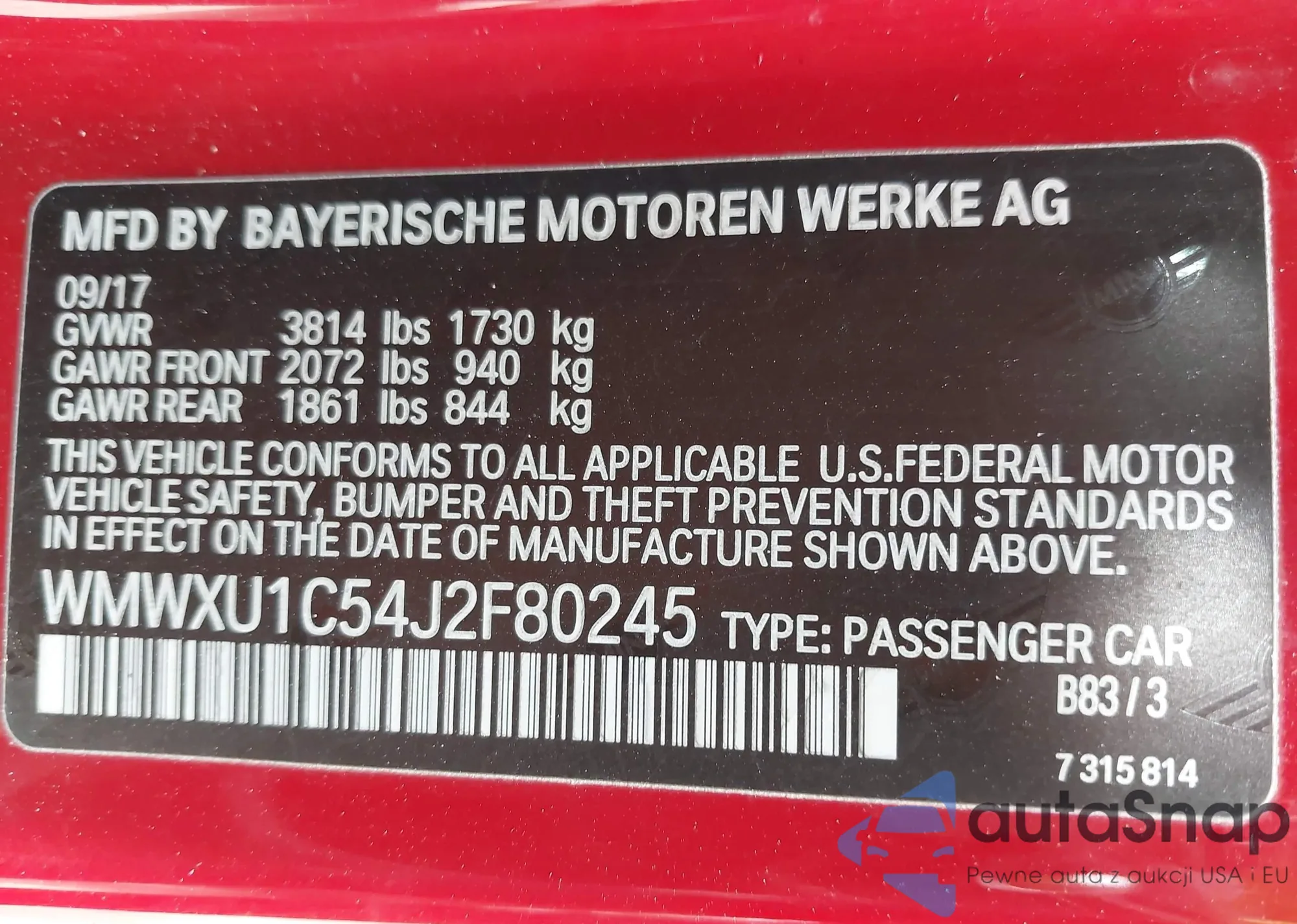 VIN: WMWXU1C54J2F80245
