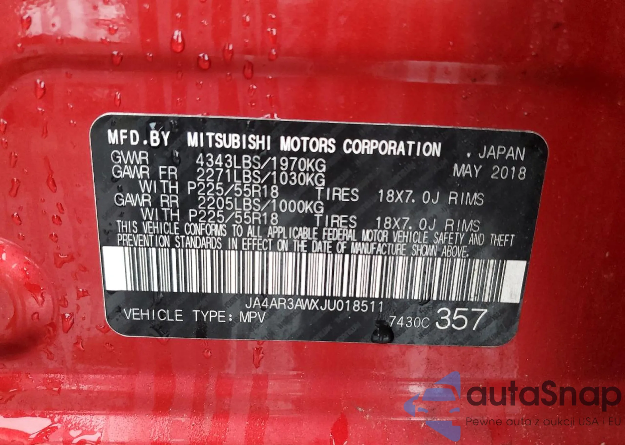 VIN: JA4AR3AWXJU018511
