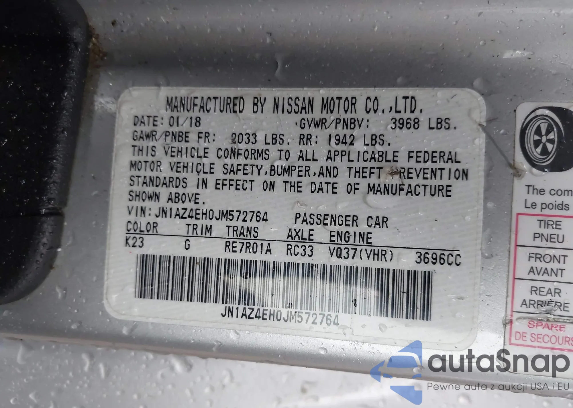 • VIN: JN1AZ4EH0JM572764