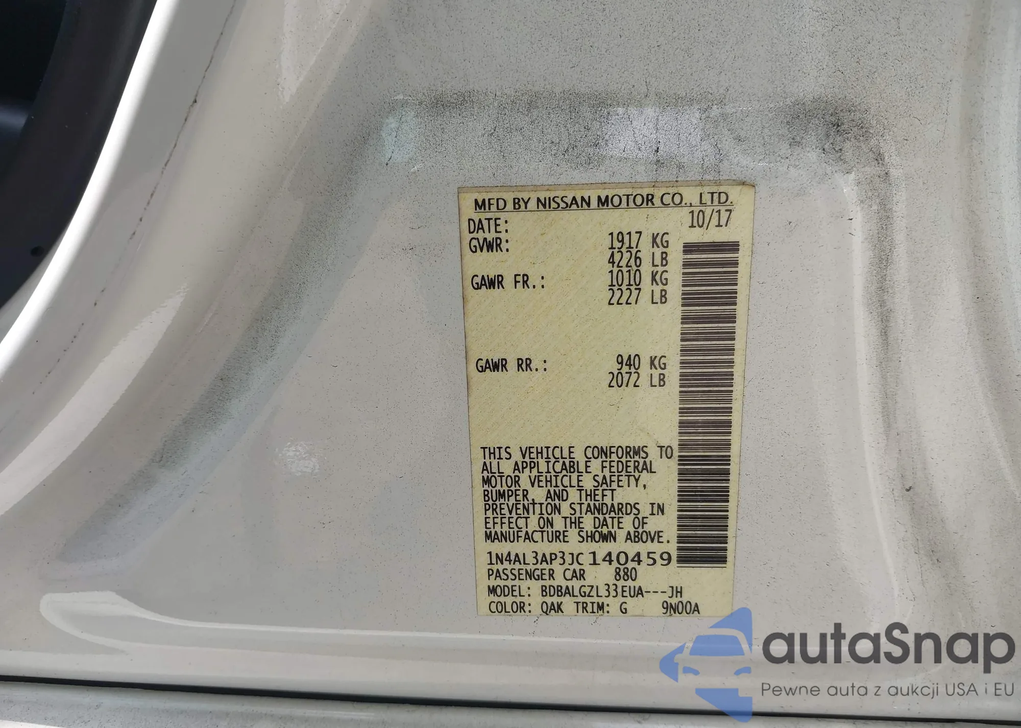 The car Nissan Altima 2018 (VIN 1N4AL3AP3JC140459) has not been auctioned before. The documents are clean, and the mileage matches or is below the market average. Sold by an insurance company – we recommend purchase. Delivery to the port will take approx. 6–8 weeks.