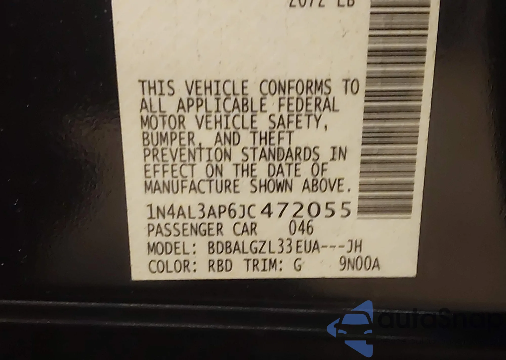 The car Nissan Altima 2018 (VIN 1N4AL3AP6JC472055) has not been auctioned before. The documents are clean, and the mileage matches or is below the market average. Sold by an insurance company – we recommend purchase. Delivery to the port will take approx. 6–8 weeks.