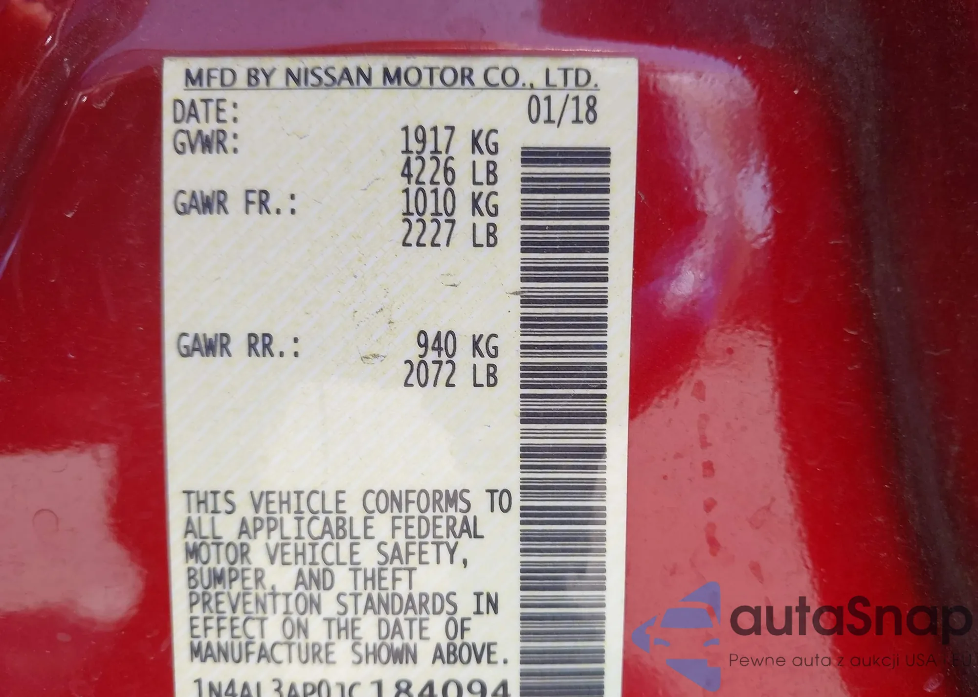 VIN: 1N4AL3AP0JC184094