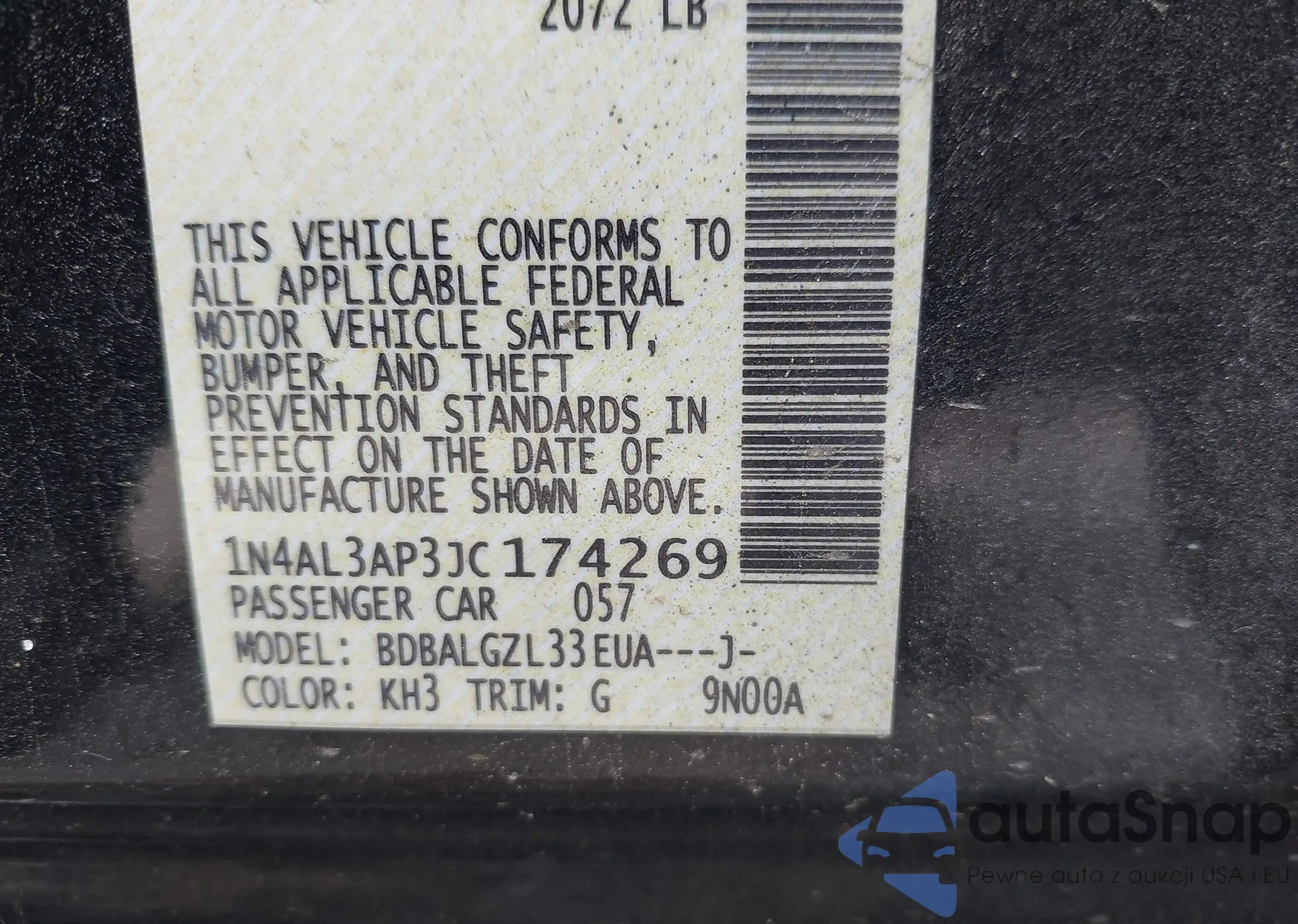 • VIN: 1N4AL3AP3JC174269