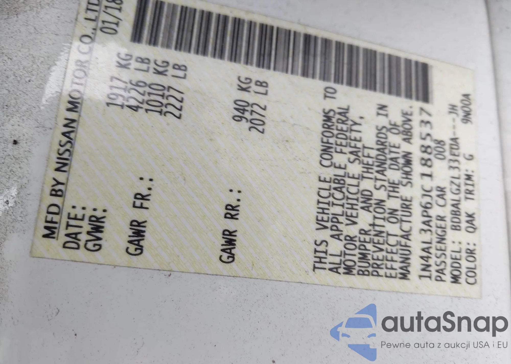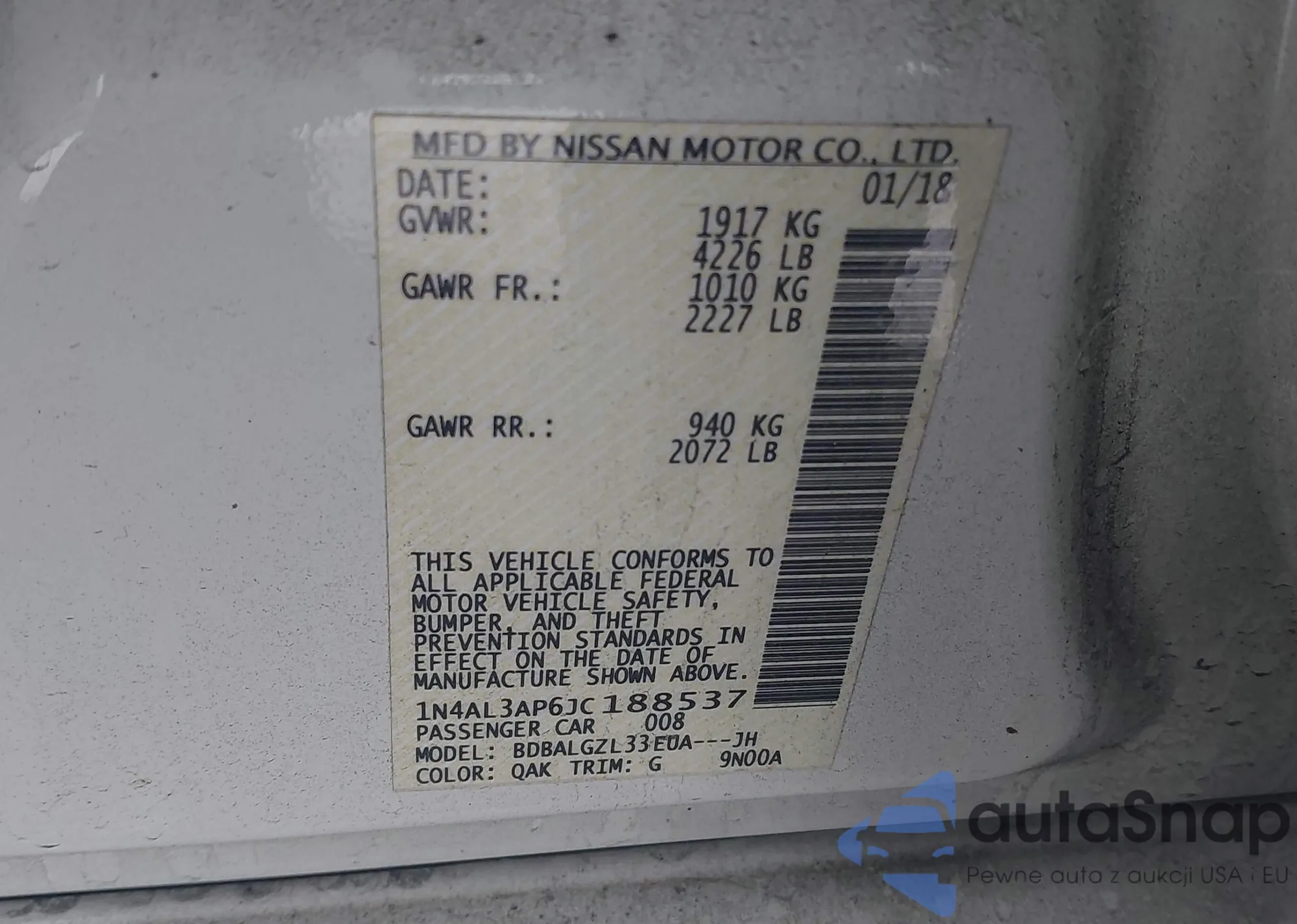 VIN: 1N4AL3AP6JC188537