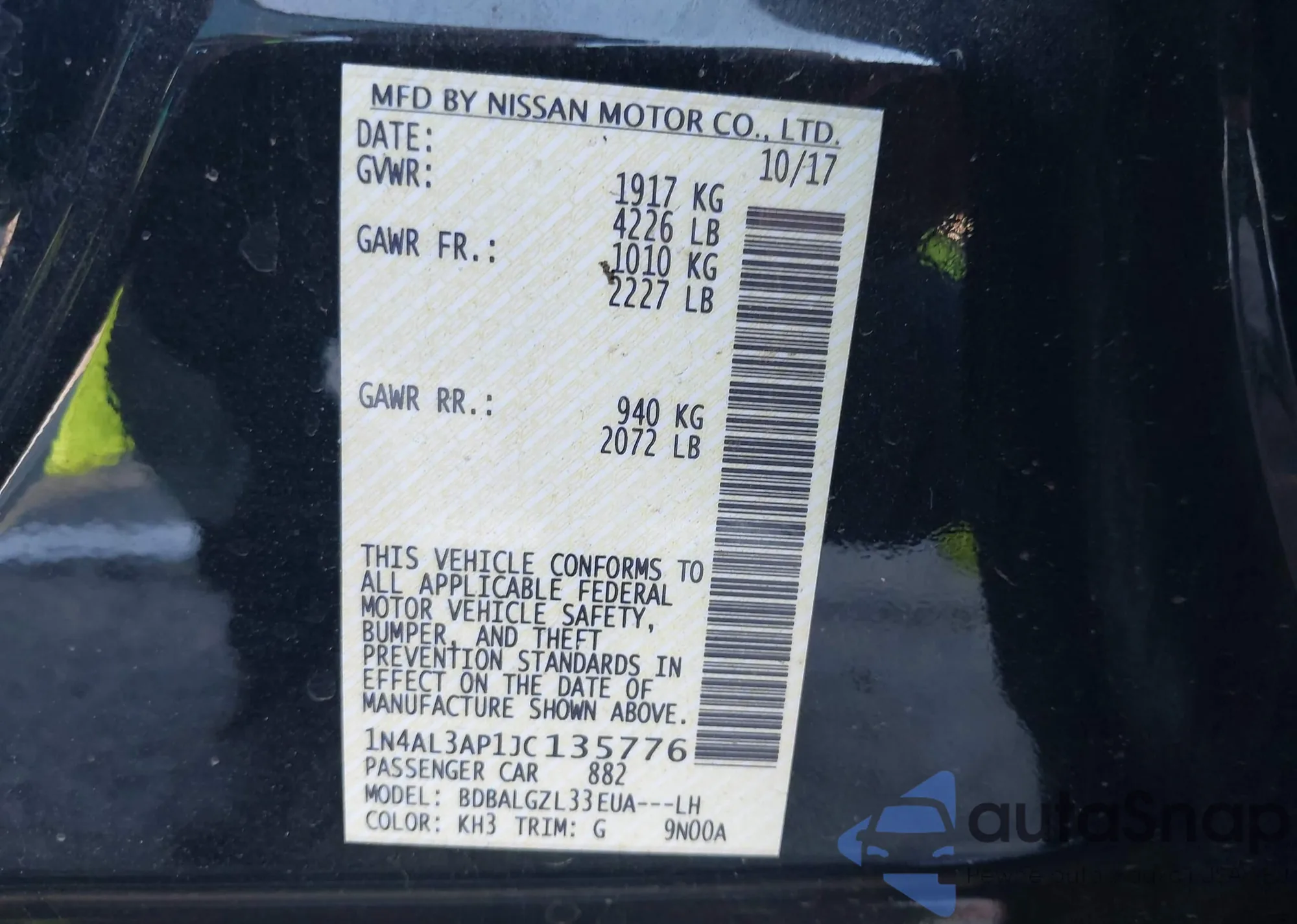 VIN: 1N4AL3AP1JC135776