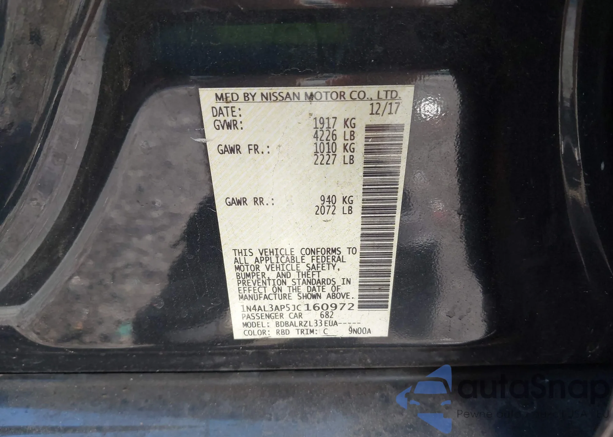 VIN: 1N4AL3AP5JC160972