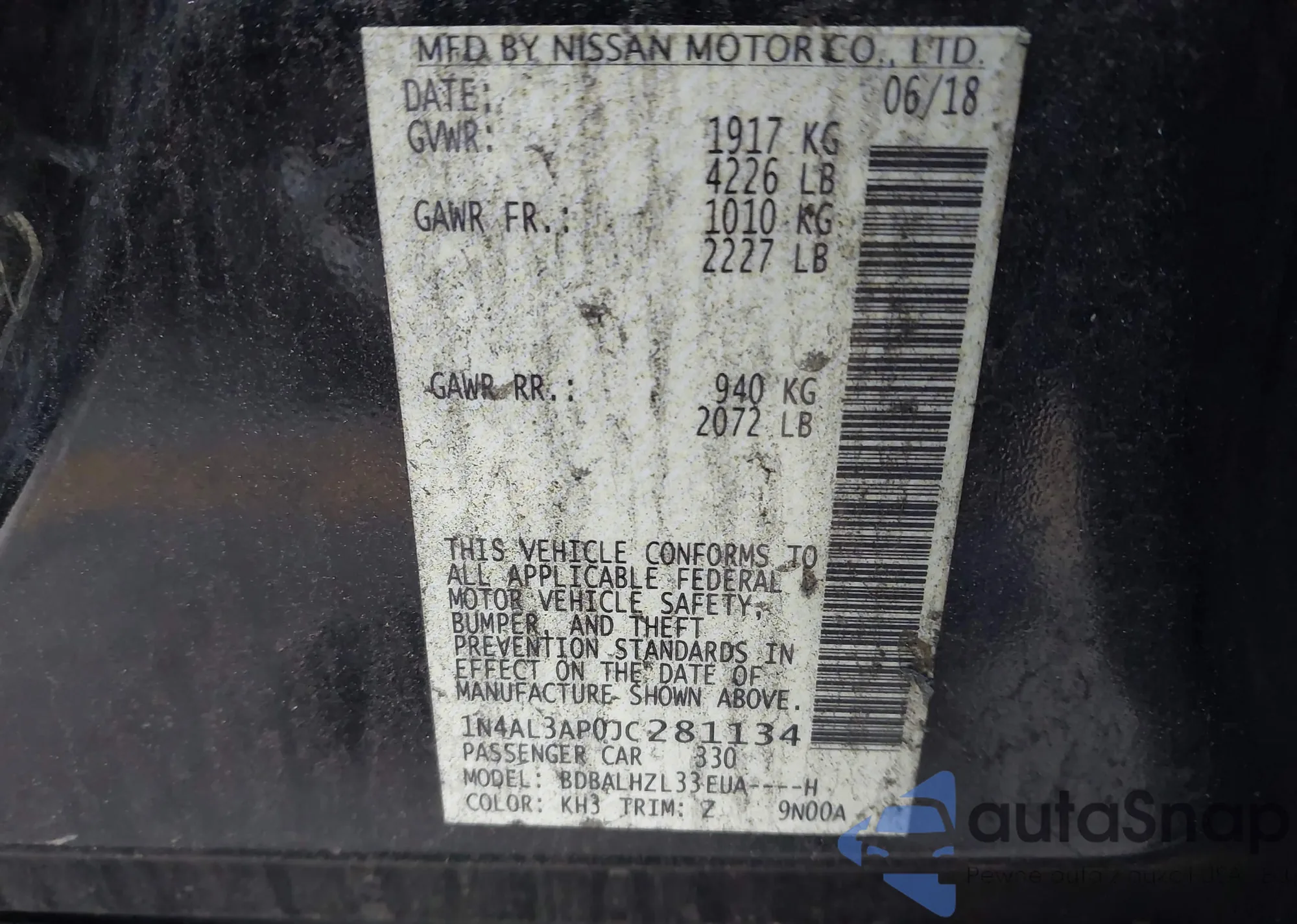 The car Nissan Altima 2018 (VIN 1N4AL3AP0JC281134) has already been auctioned 1 times and/or is sold by an unverified seller. We recommend checking the Carfax report and confirming registration possibilities before purchase.
