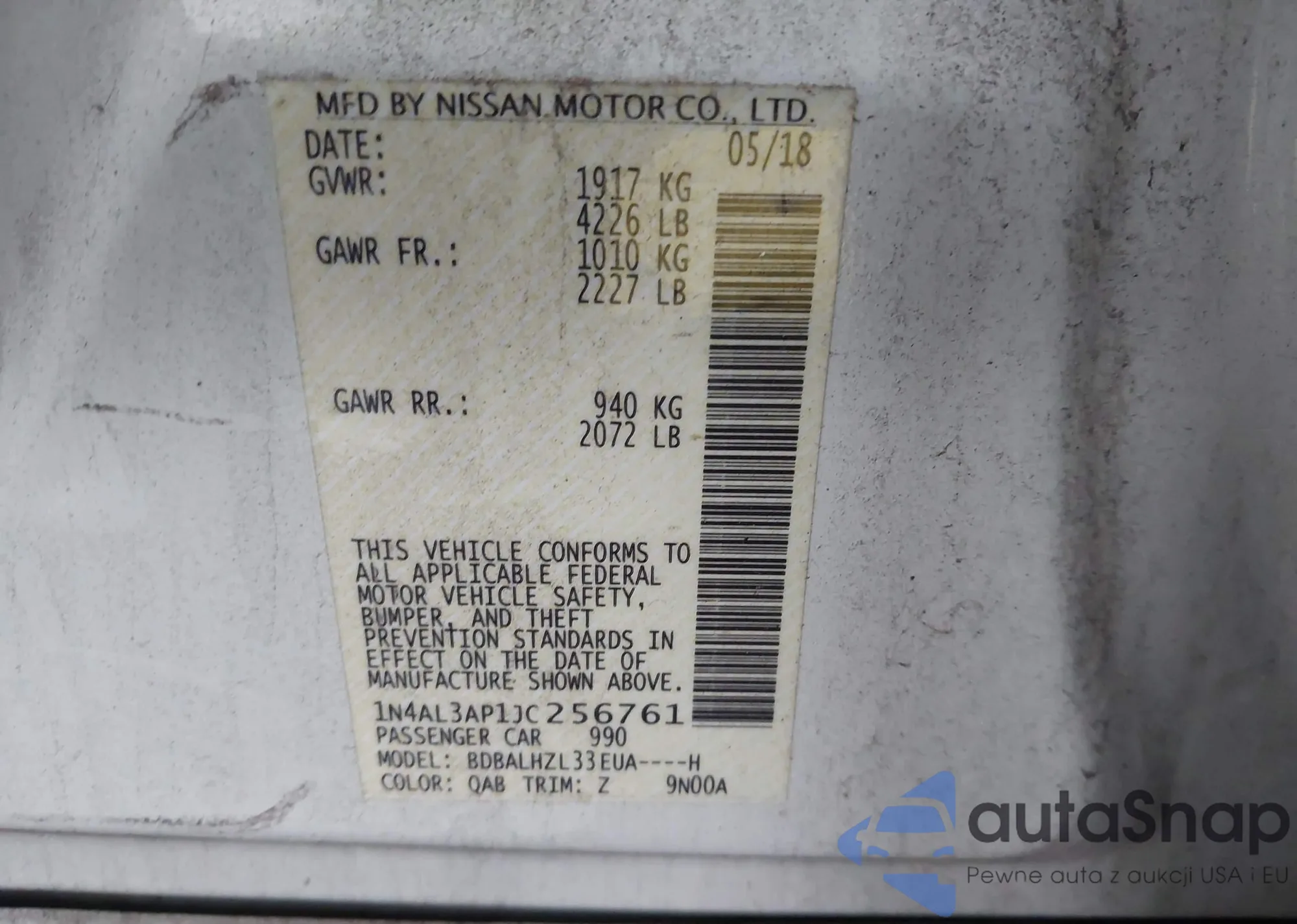 VIN: 1N4AL3AP1JC256761