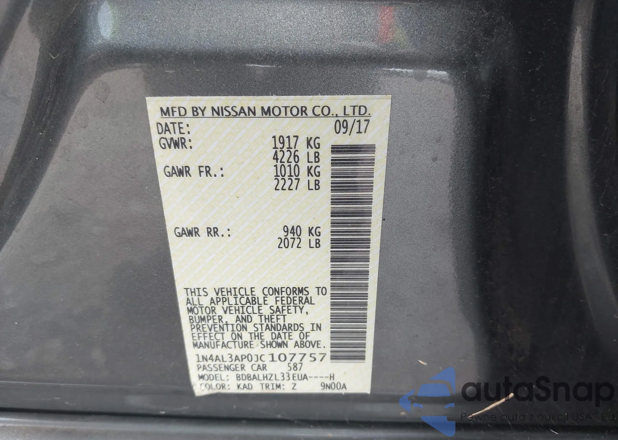 VIN: 1N4AL3AP0JC107757