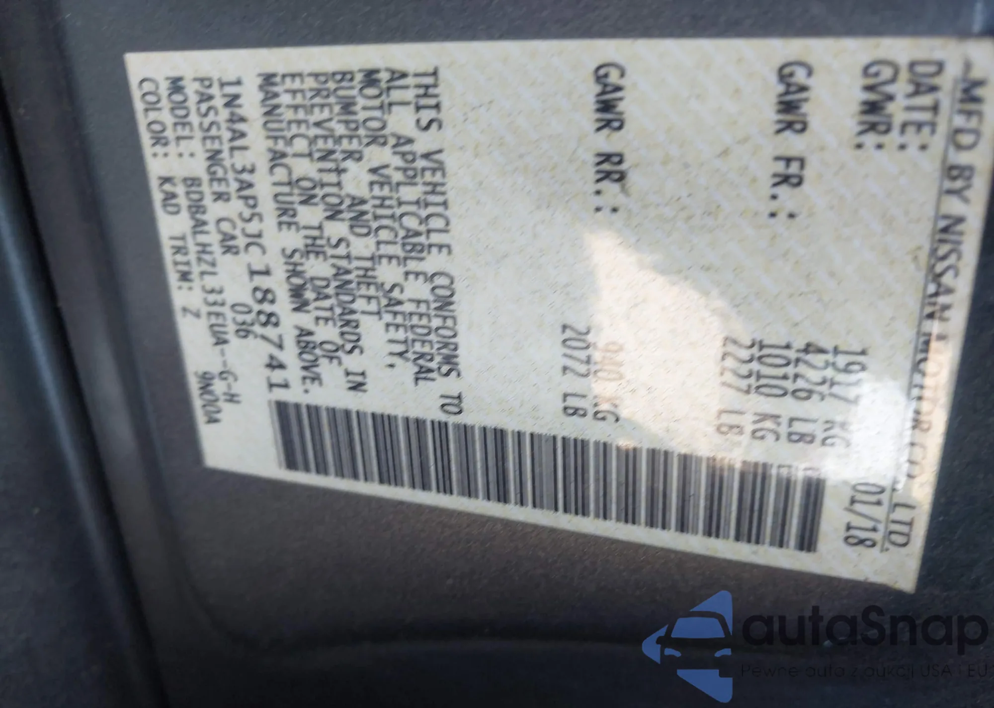 VIN: 1N4AL3AP5JC188741